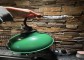 Light looks great with our turquoise Mexican tile backsplash. Nice enamel finish.