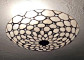 I purchased this light as a “shade replacement” for my fan. A bit pricey for that purpose, but oh my it is SO BEAUTIFUL! I’m so pleased, I love it. Off it looks whitish and on it has an opaque creamy hue. However the glass beads shine through clear giving it a gorgeous contrast. It came extremely quick and wonderfully packed. Recommend highly.