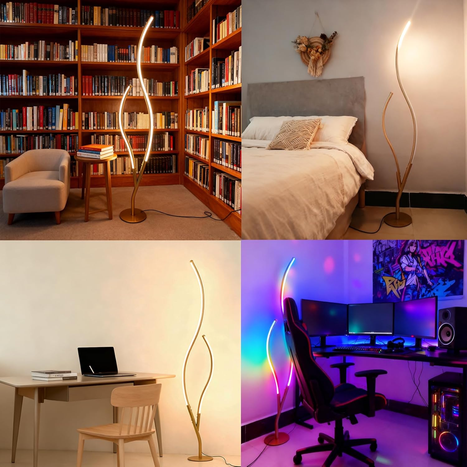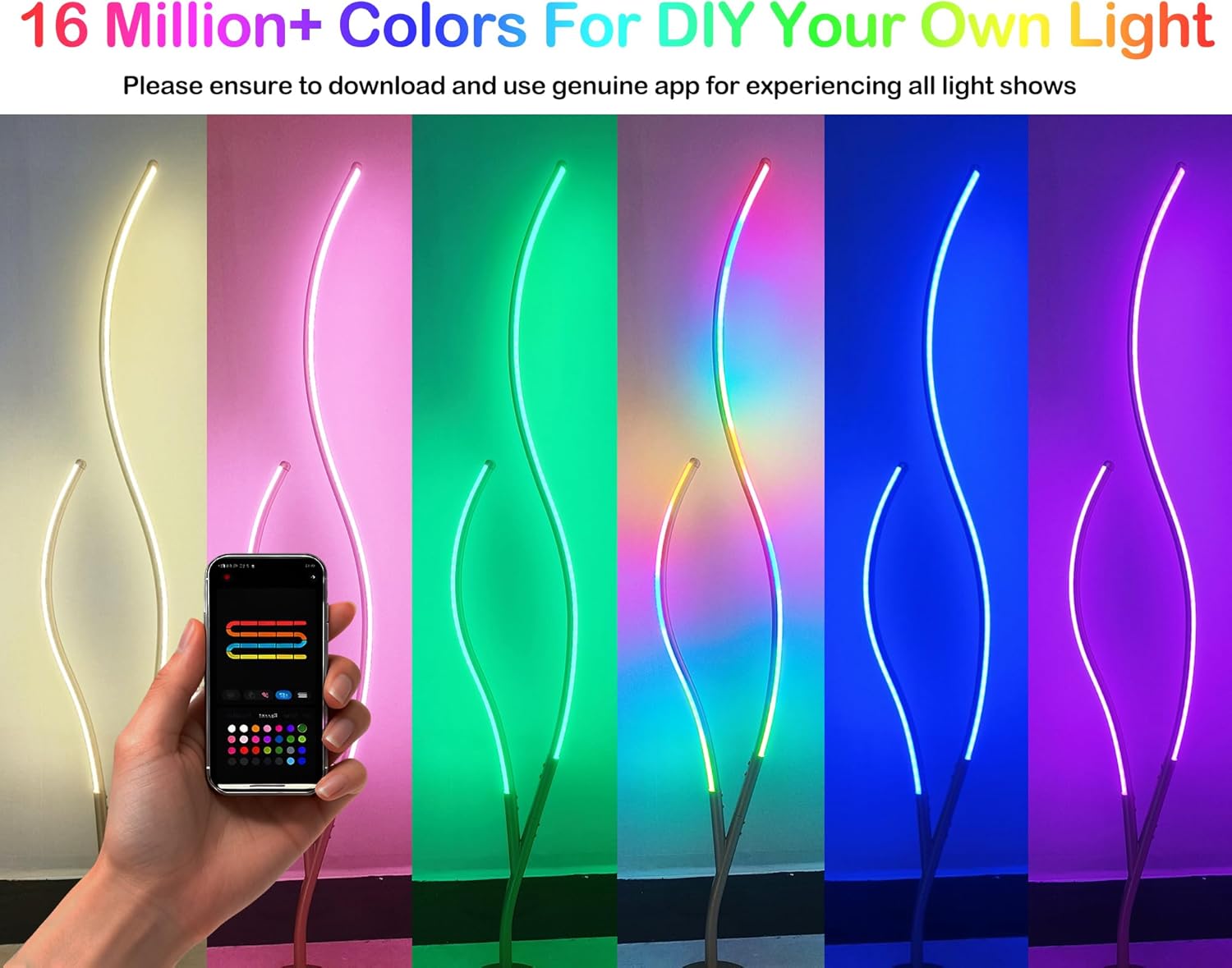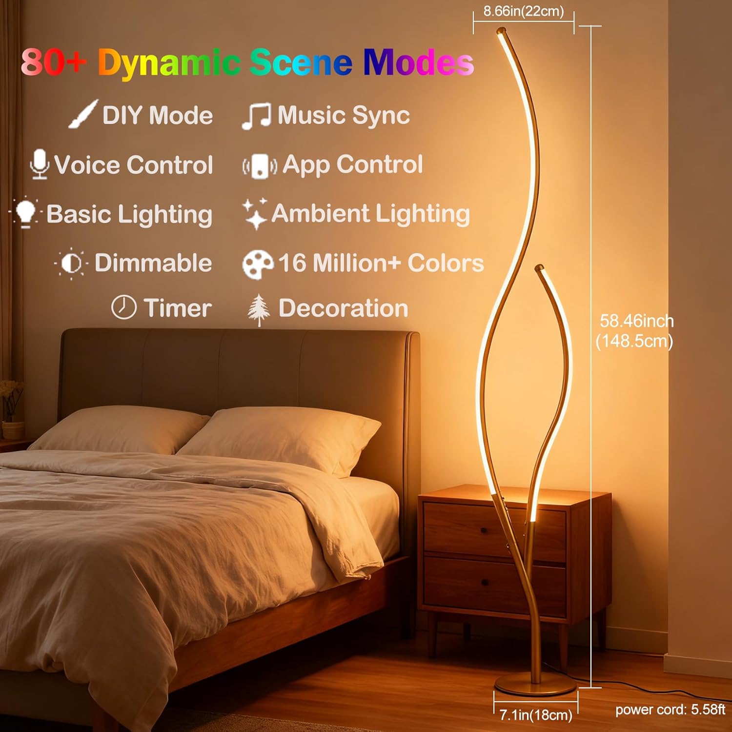 Flaunting a gold finish, the RGBWIC floor lamp adds a touch of shimmer to your living space. The light fixture’s branch-inspired silhouette brings a dramatic decorative impact to your interior. Featuring dynamic RGBW+IC color technology, it offers customizable multi-color dynamic displays for you to suit your different lighting needs. It is a good way to light up and decorate your home, create a festival atmosphere, and bring a touch of whimsy to your house. It can synchronize with music, movies, or game audio with adjustable colors and brightness to create unforgettable memories. Boasting 80+ preset dynamic scene modes, you can explore the perfect ambiance, pick one for any occasion, adjust brightness, and set timers to tailor your lighting effortlessly for a personalized experience.