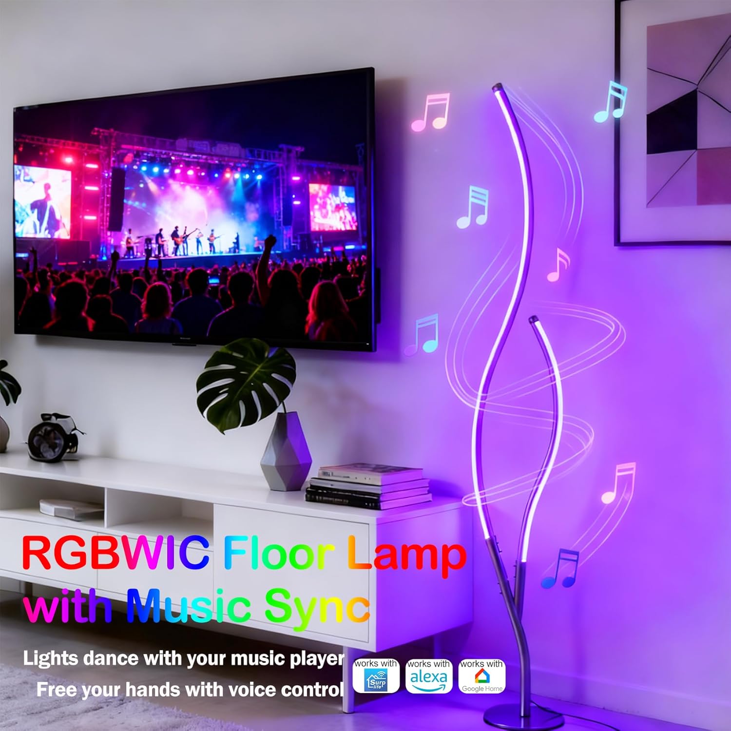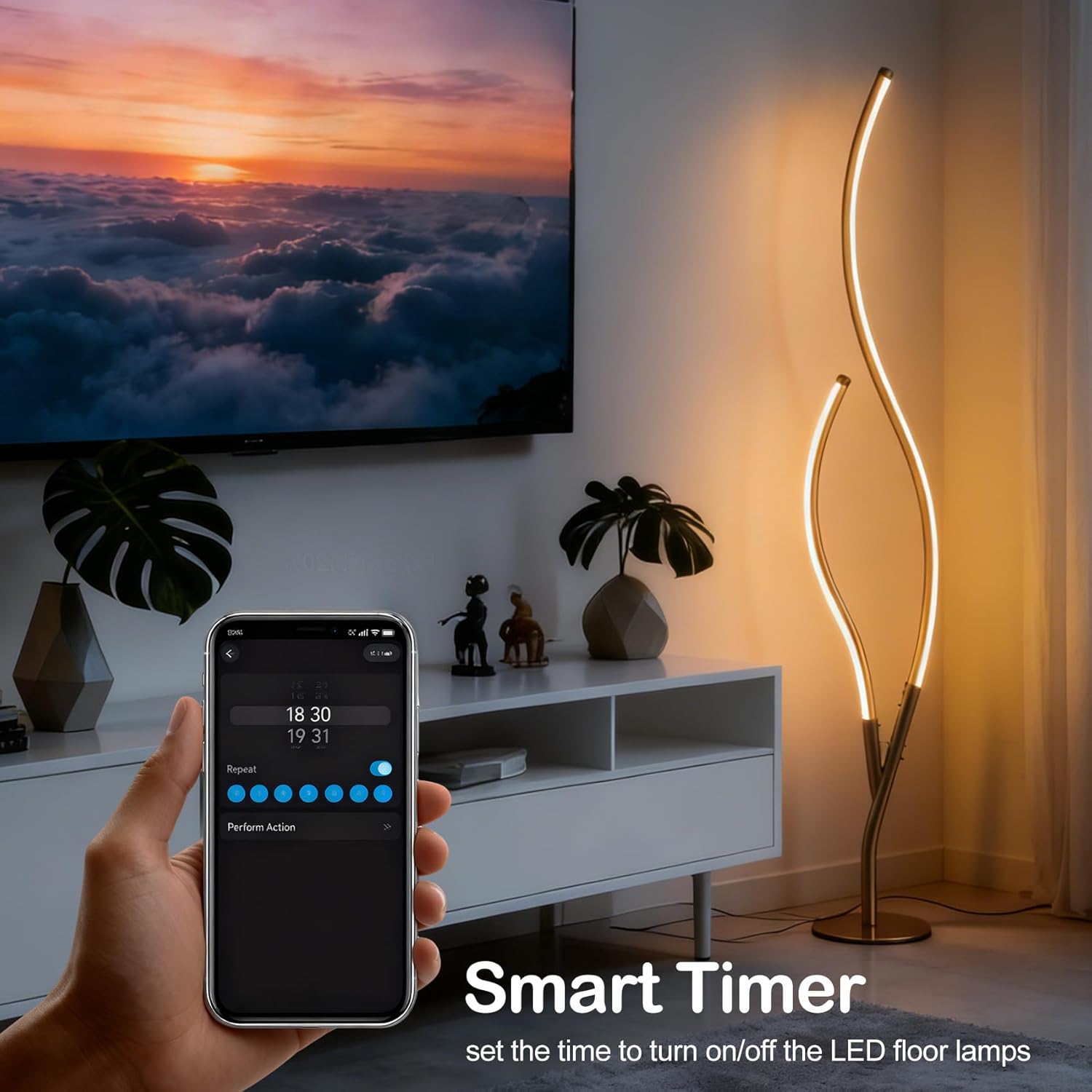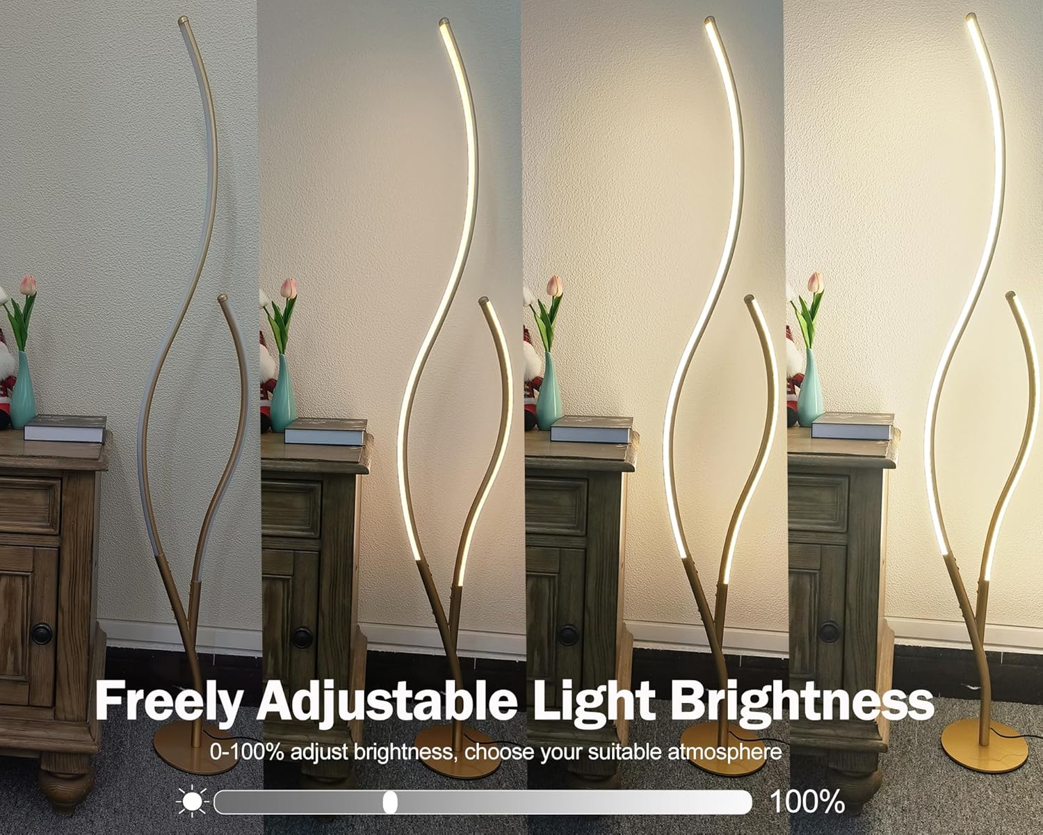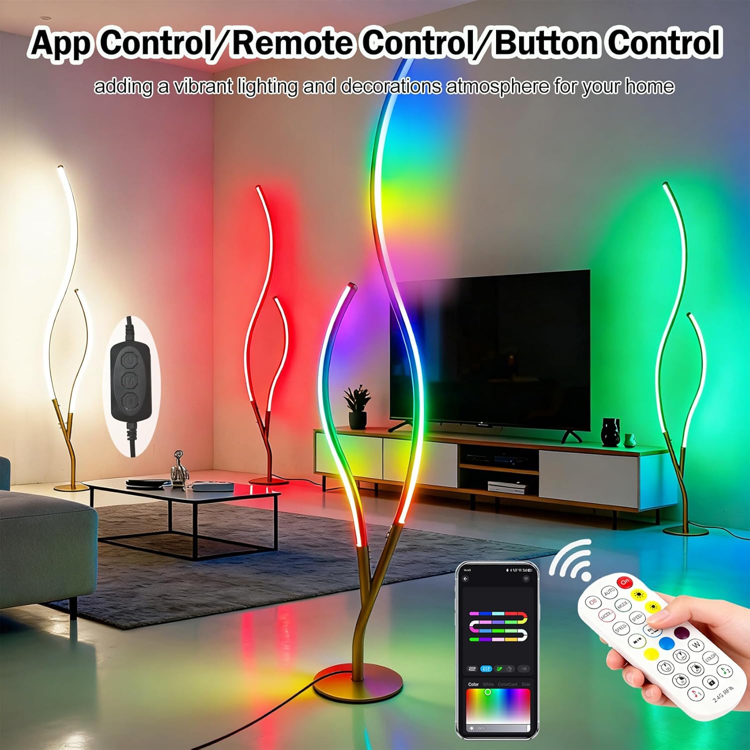Flaunting a gold finish, the RGBWIC floor lamp adds a touch of shimmer to your living space. The light fixture’s branch-inspired silhouette brings a dramatic decorative impact to your interior. Featuring dynamic RGBW+IC color technology, it offers customizable multi-color dynamic displays for you to suit your different lighting needs. It is a good way to light up and decorate your home, create a festival atmosphere, and bring a touch of whimsy to your house. It can synchronize with music, movies, or game audio with adjustable colors and brightness to create unforgettable memories. Boasting 80+ preset dynamic scene modes, you can explore the perfect ambiance, pick one for any occasion, adjust brightness, and set timers to tailor your lighting effortlessly for a personalized experience.