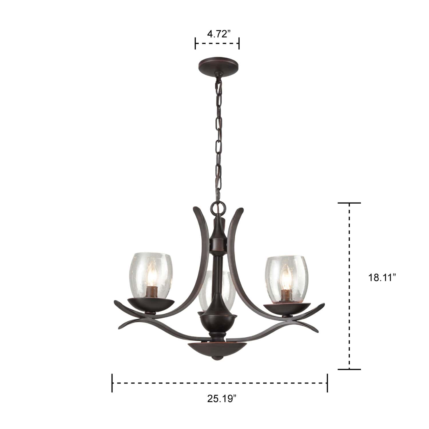 Featuring a hand-painted brushed rubbed bronze finish, the chandelier injects a dose of rustic chic to your living space. This 3-light chandelier boasts the curved arms of its iron frame largely resembling the twigs and the seeded glass shades and candelabra-inspired lights resembling the flowers on the twigs, giving your home a hint of tasteful vibe.