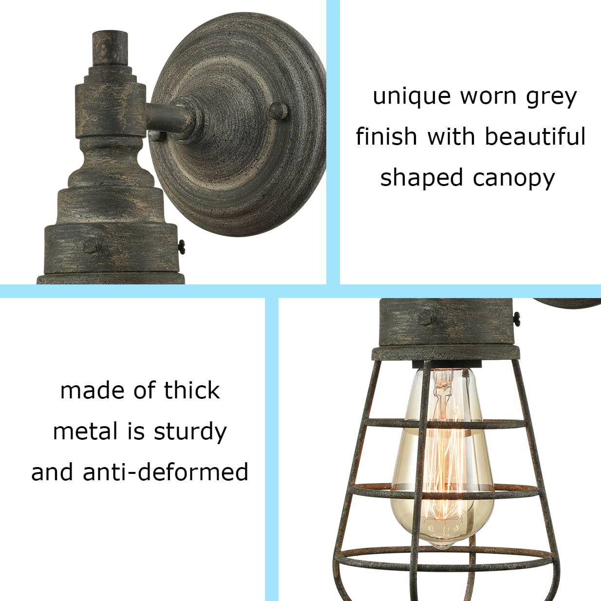 The wall sconce's rustproof dark charcoal gray finish delivers a rustic inspired charm to your interior. The wall sconce’s metal shades display a caged look that allows the lights to shine through freely, bringing a new twist on bold factory-chic style to your home. The exposed bulbs are enveloped in the finely welded cages respectively, enabling you to replace the bulbs easily.