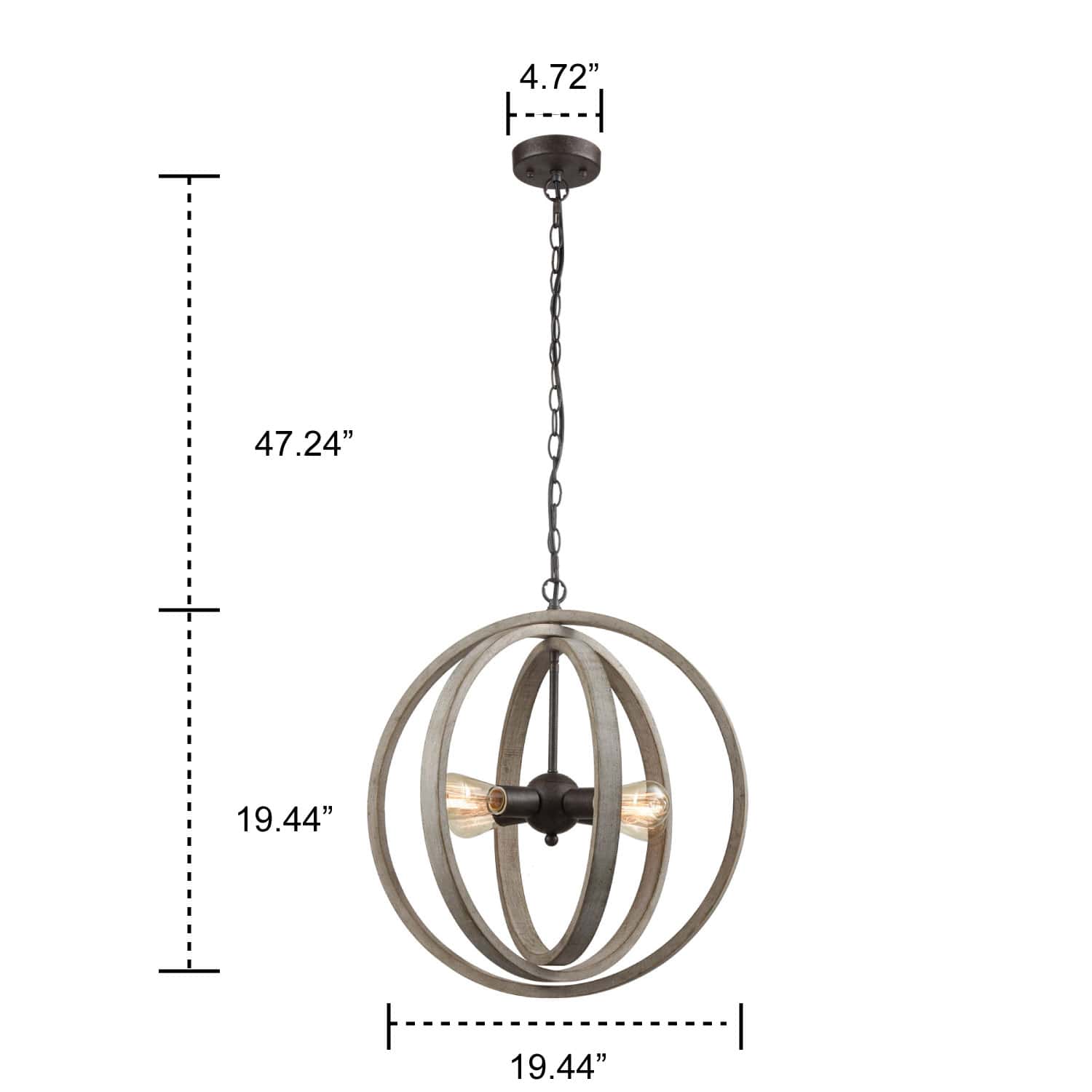This rustic chandelier's fitted with three wooden rings in distressed gray. Its lamp holders, chain, and canopy are showing off a rusty dark brown finish. A mix of finishes encompasses both nature-inspired qualities and farmhouse elements, yet maintains an industrial feel.