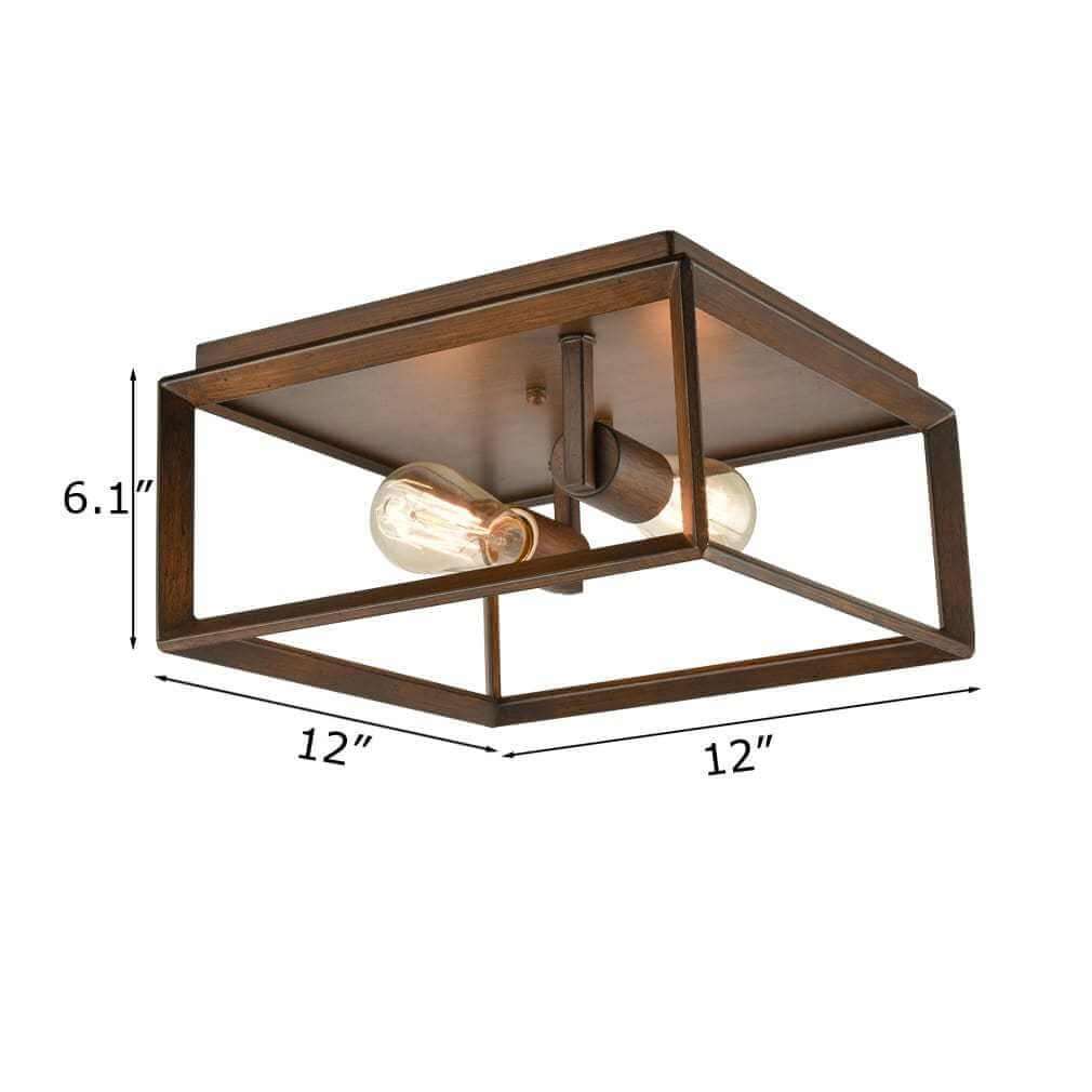 Featuring a caramel faux wood finish, the cage flush mount ceiling light conveys a hint of rusticity to your home interior. The metal rectangular cage shade of the ceiling light highlights your living space with its bold geometric accent. Crafted of solid metal and featuring high-temperature baking varnish craft, the ceiling light is durable and rustproof.