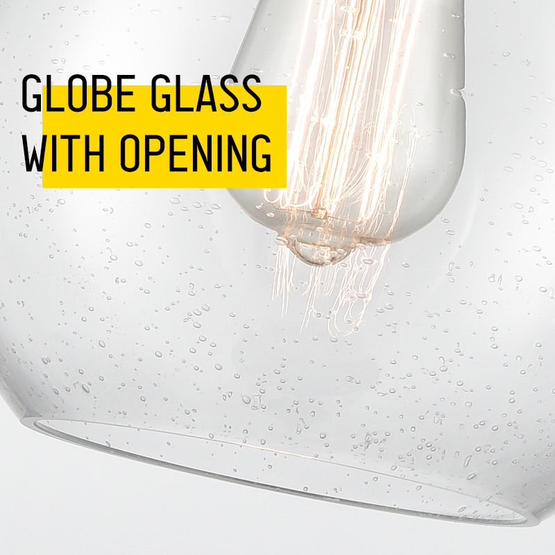 We are sooo happy with how this light fixture has worked out! This hanging globe was the perfect replacement to update an ugly, pull-chain light fixture over the kitchen sink of our old mill house. We put it in and then added a "DEWENWILS Remote Control Light Bulb Socket, Wireless Light Switch for Pull Chain Light Fixture" before screwing an Edison light bulb into the globe. The globe is long enough to accommodate both the remote extension and the bulb and still look amazing. Now, there is no ugly pull chain because the On/Off switch remote plate is screwed into wall by the kitchen sink's garbage disposal and we didn't have to hire an electrician or add any new electrical work to create better and more functional lighting above the sink area.