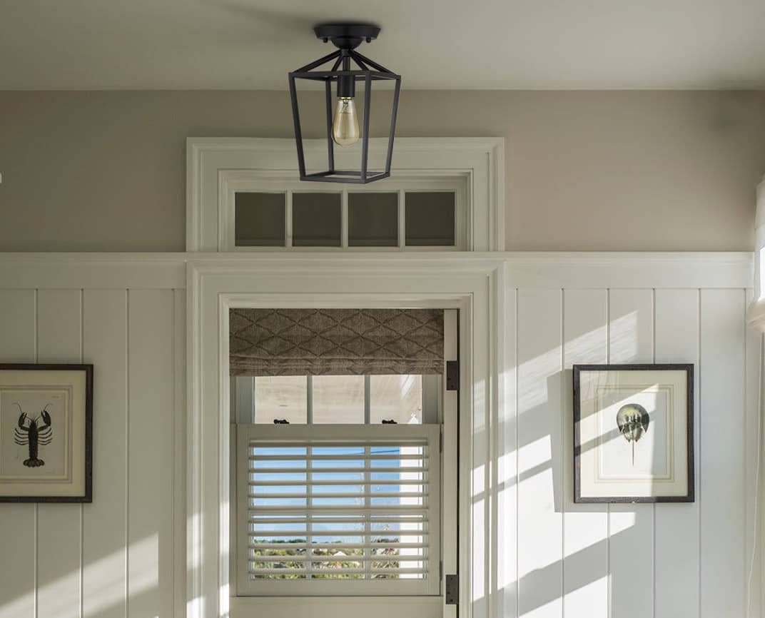 The semi flush mount ceiling light matte black goes well in the kitchen, bedroom, foyer, hallway, stairway, entryway, and porch. Compatible with one 60-watt E26-base bulb (NOT included). Fully dimmable with compatible dimmer switch and a dimmable bulb. Exuding delicate light rays to your interior, it creates an inviting atmosphere in your home.