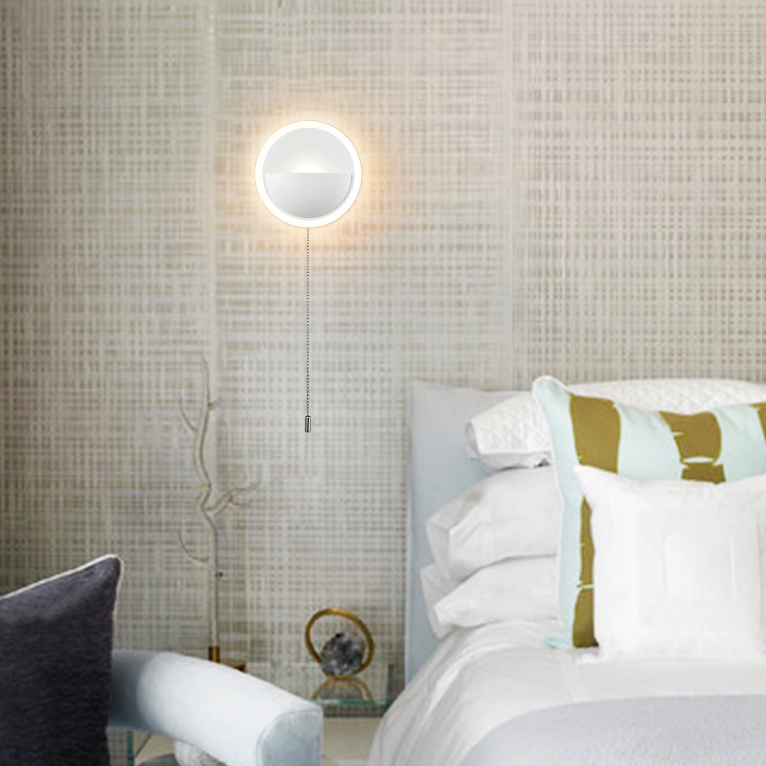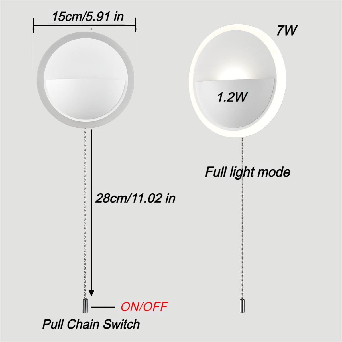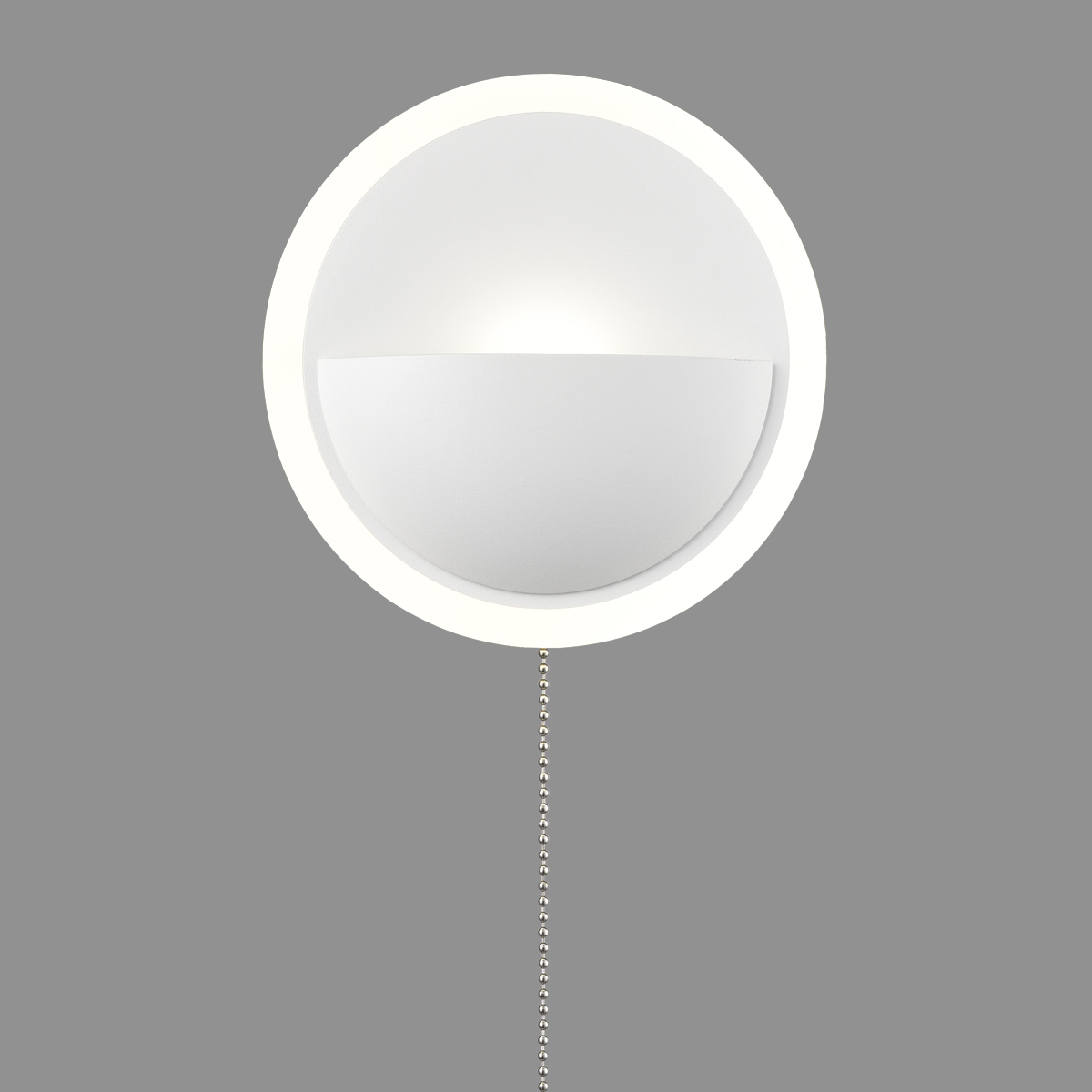 Boasting a matte white finish, the LED wall sconce conveys a cool air of sophistication to your living space. Crafted from acrylic, the semicircular lampshade is perched on the rounded acrylic canopy to supply a dash of drama. It comes with built-in integrated LED PCB and no bulb is needed. It casts an enchanting aura of elegance and showcases the beauty of geometry. The LED wall sconce and the night light emit flicker-free light, helping you avoid eyestrain. The pull chain switch (without a dimming function) allows you to turn on/off the wall sconce and the night light easily.