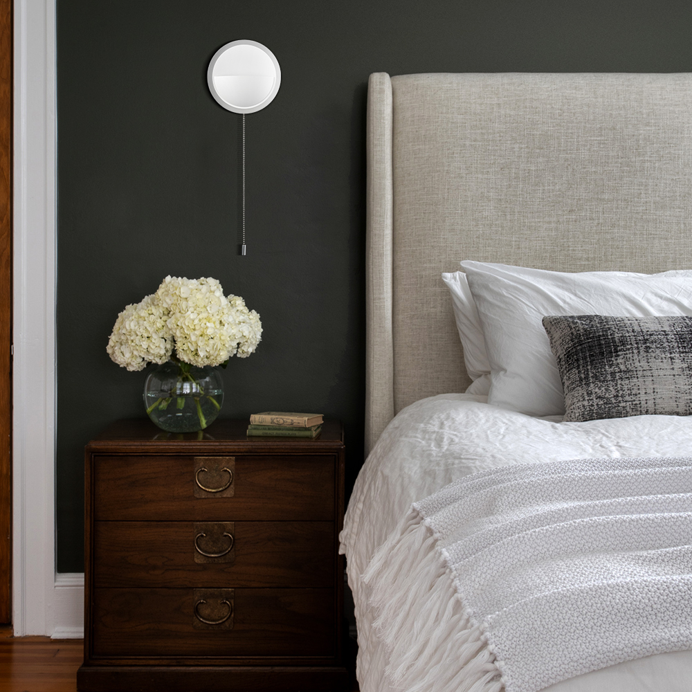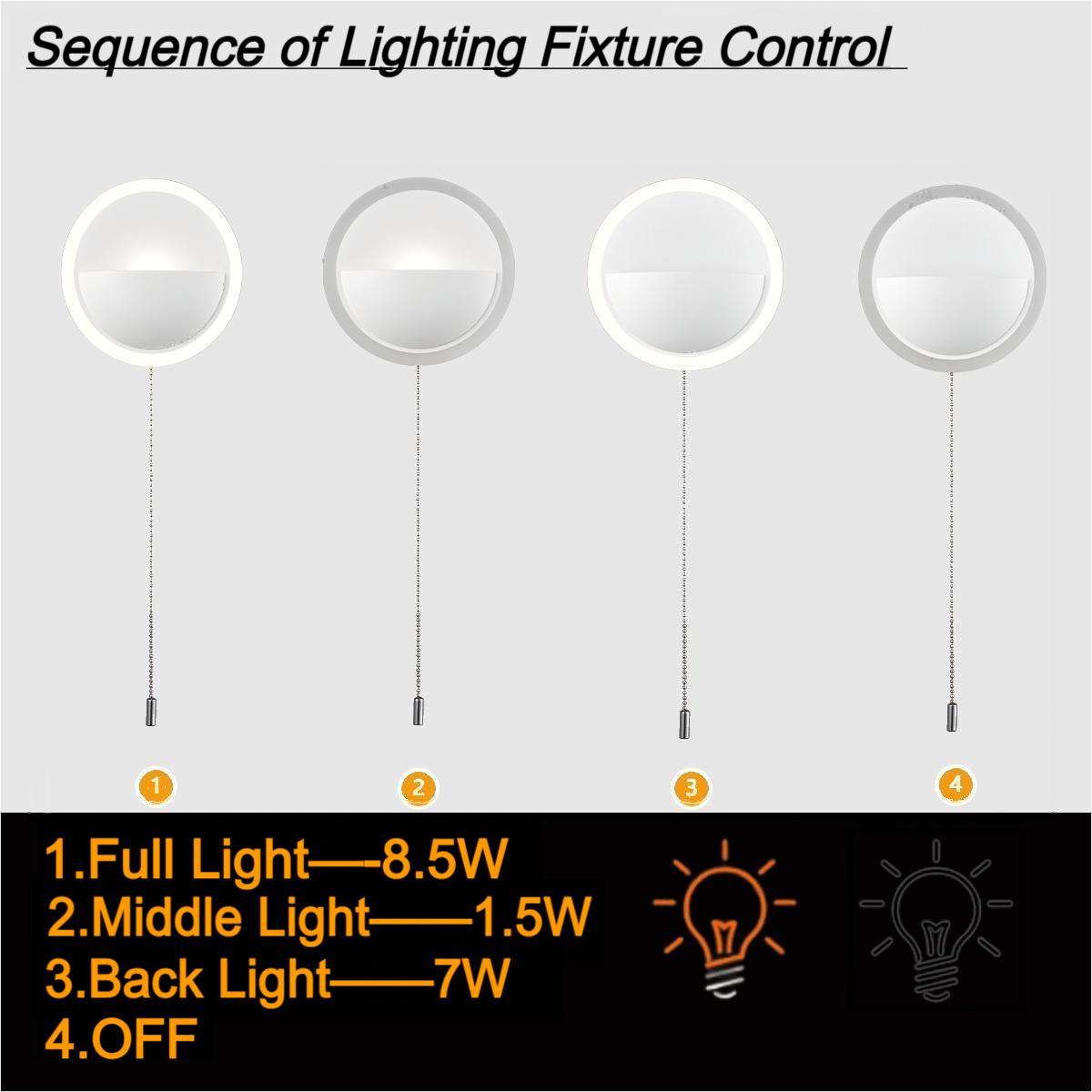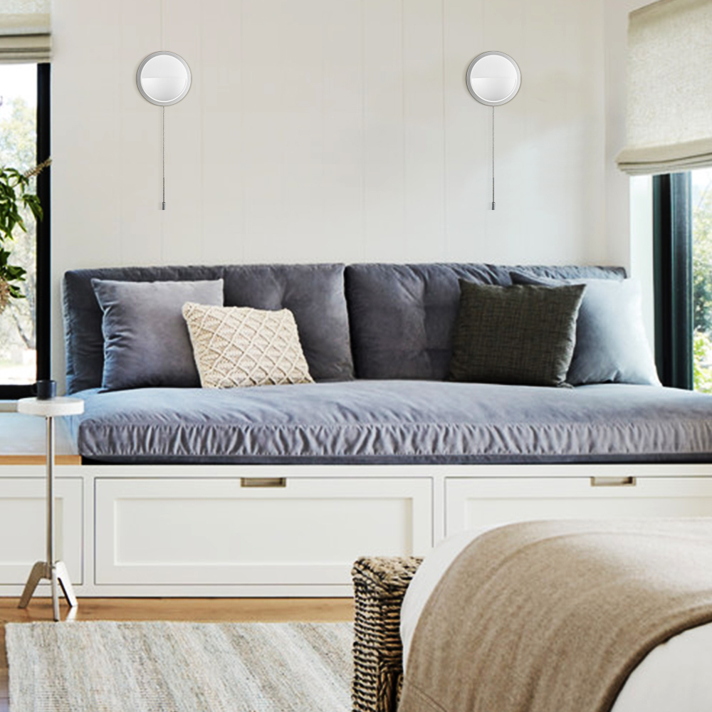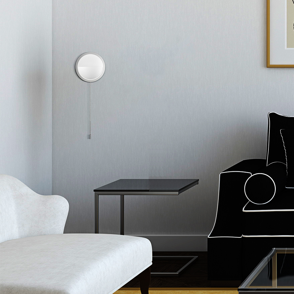 Boasting a matte white finish, the LED wall sconce conveys a cool air of sophistication to your living space. Crafted from acrylic, the semicircular lampshade is perched on the rounded acrylic canopy to supply a dash of drama. It comes with built-in integrated LED PCB and no bulb is needed. It casts an enchanting aura of elegance and showcases the beauty of geometry. The LED wall sconce and the night light emit flicker-free light, helping you avoid eyestrain. The pull chain switch (without a dimming function) allows you to turn on/off the wall sconce and the night light easily.
