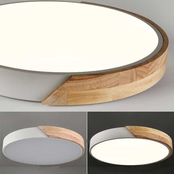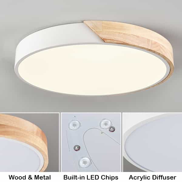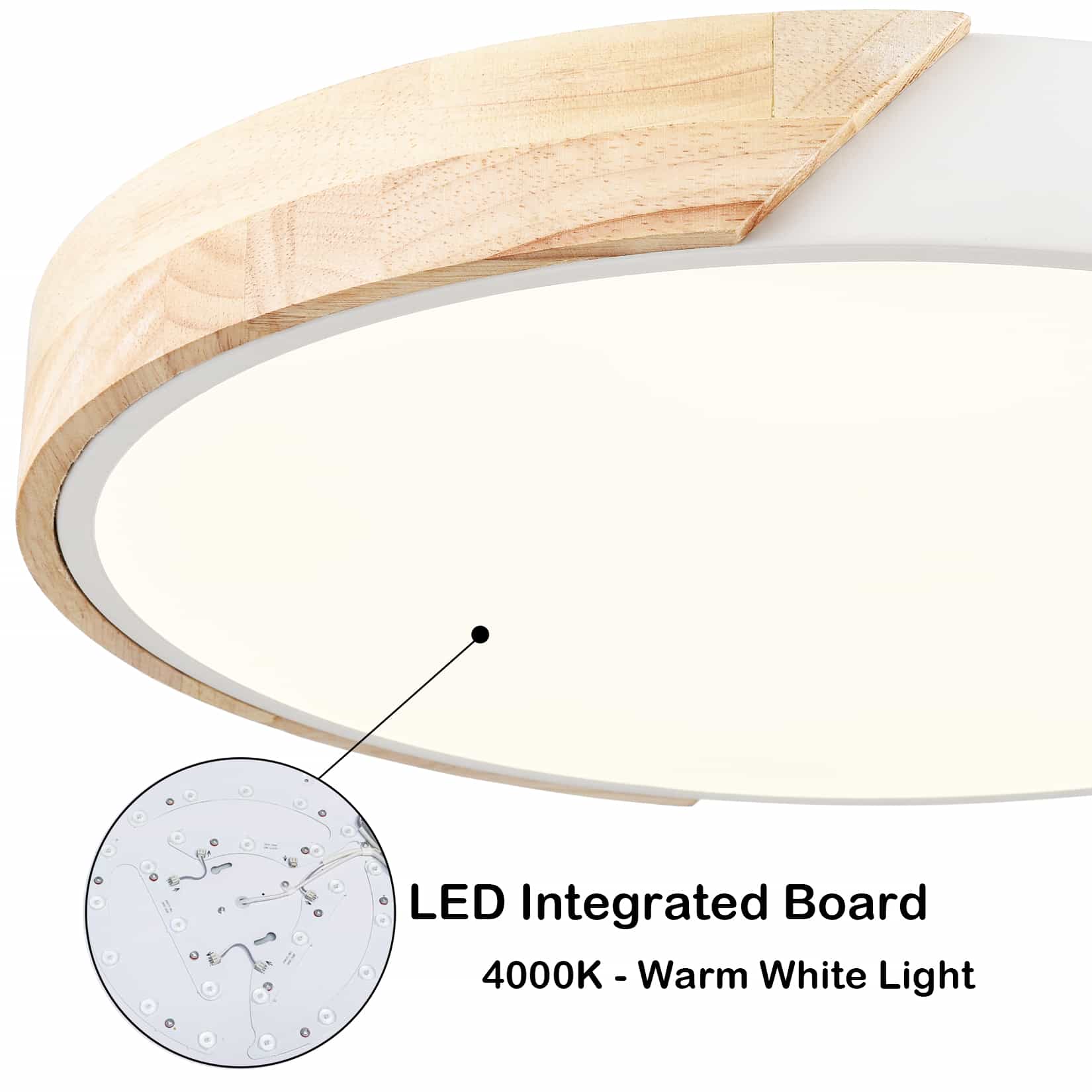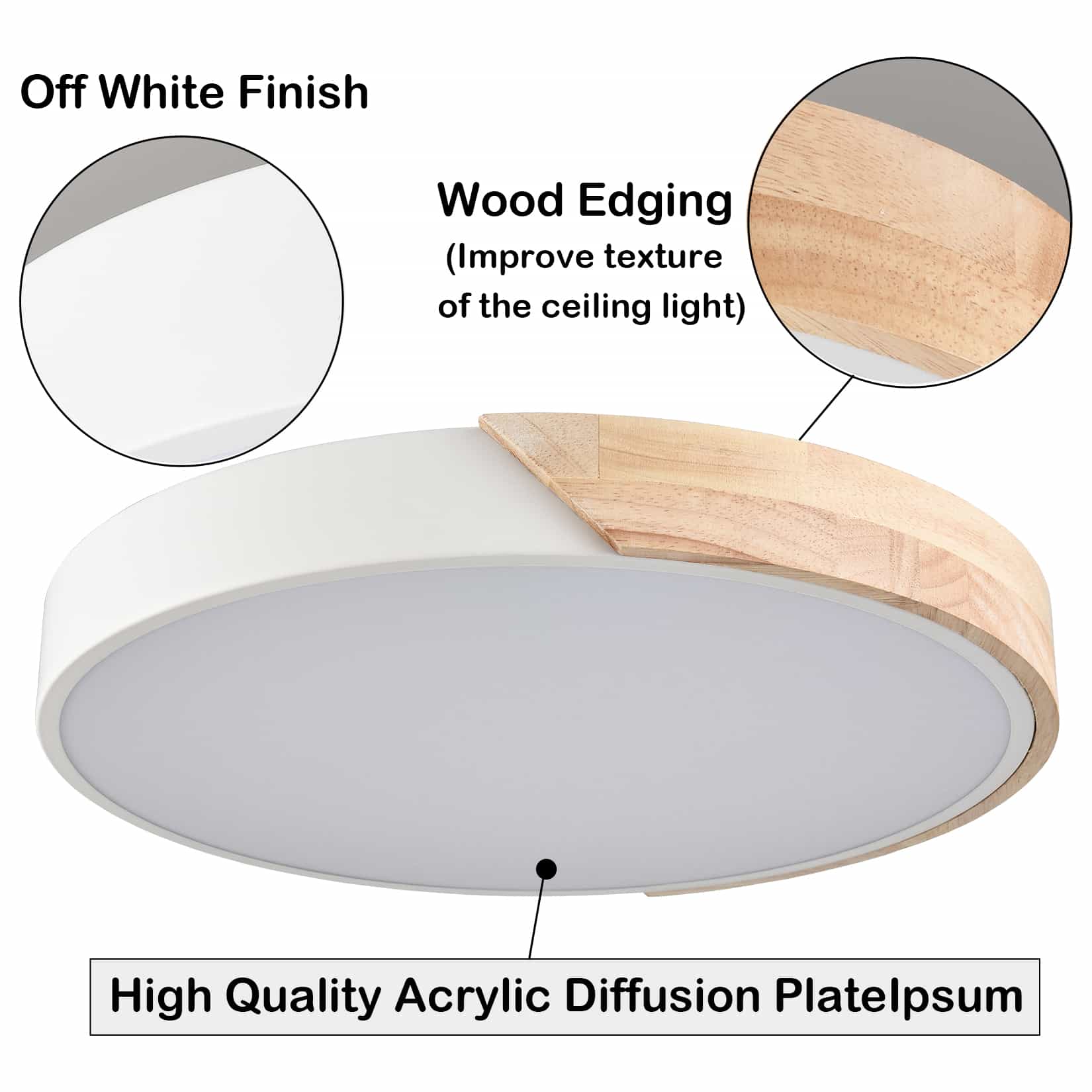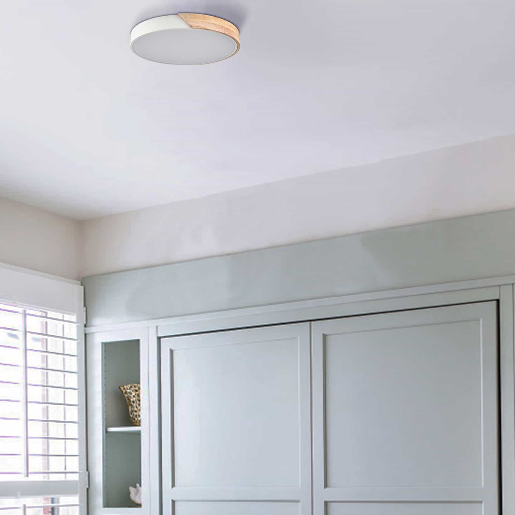 • Minimalist White and Wood LED Flush Mount Ceiling Light