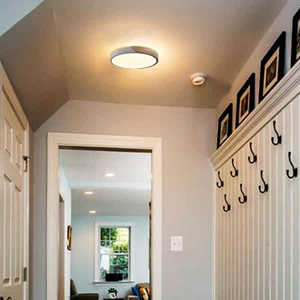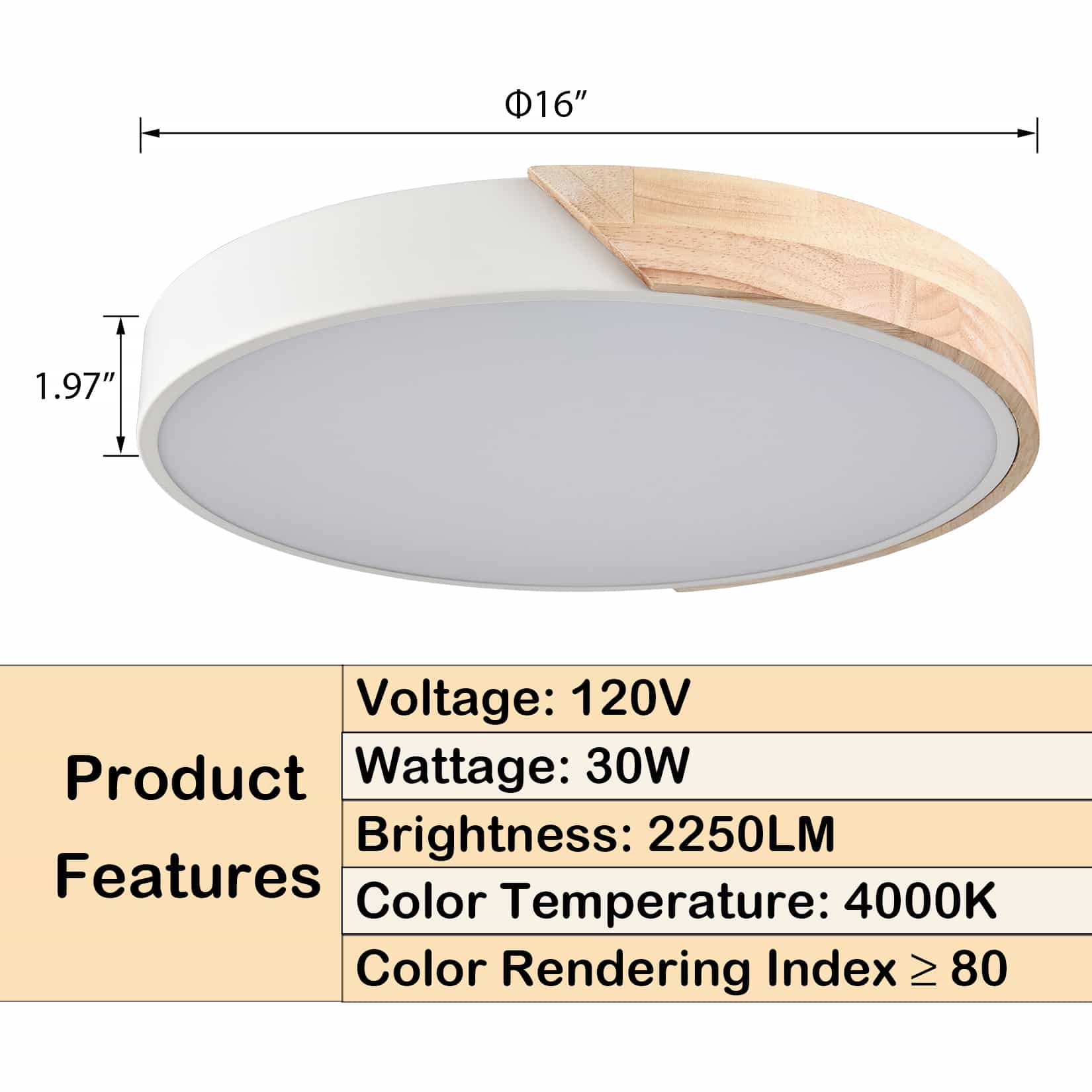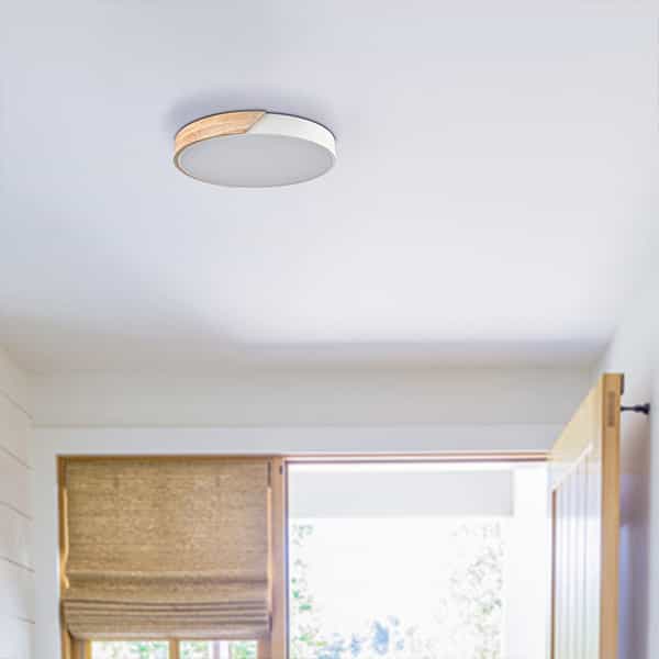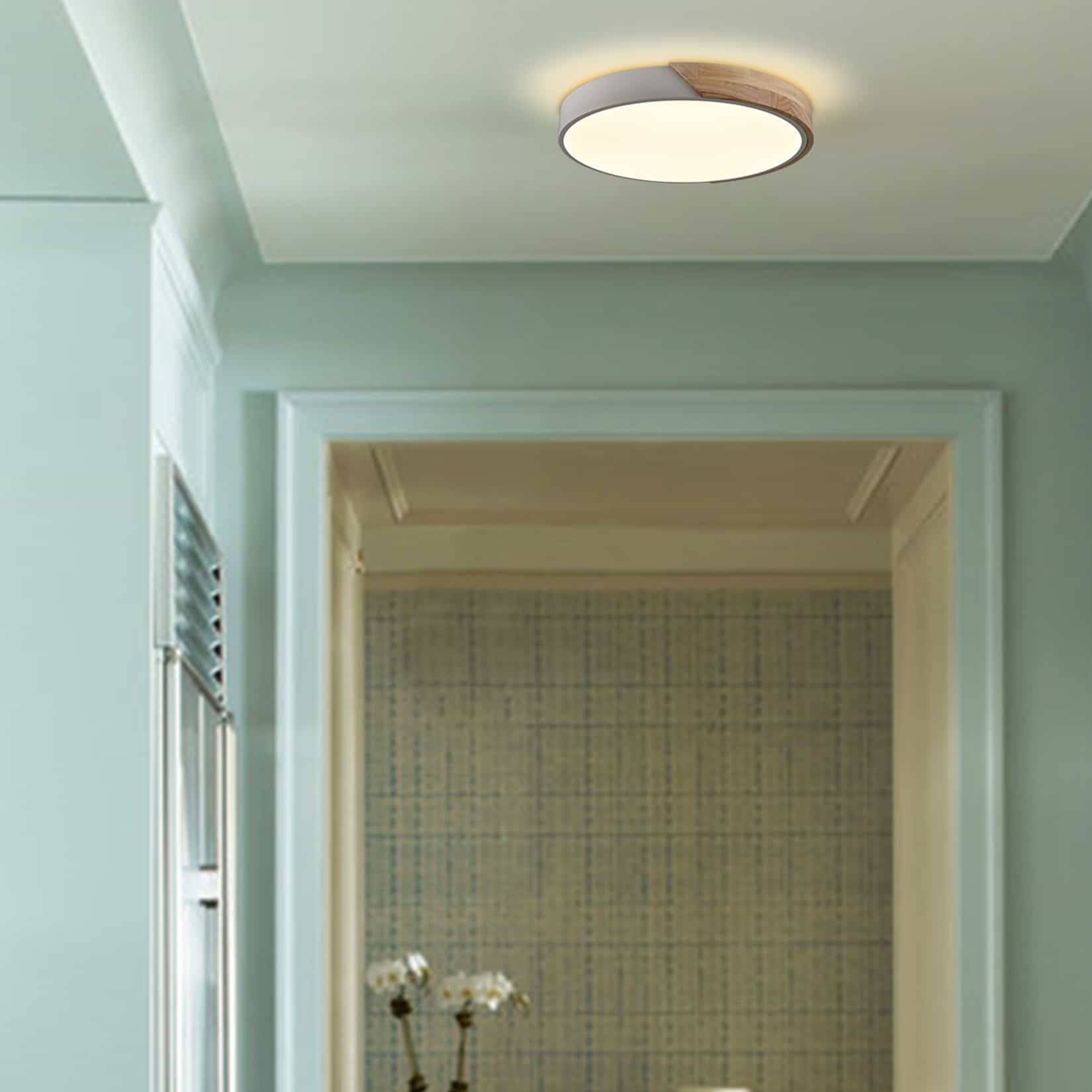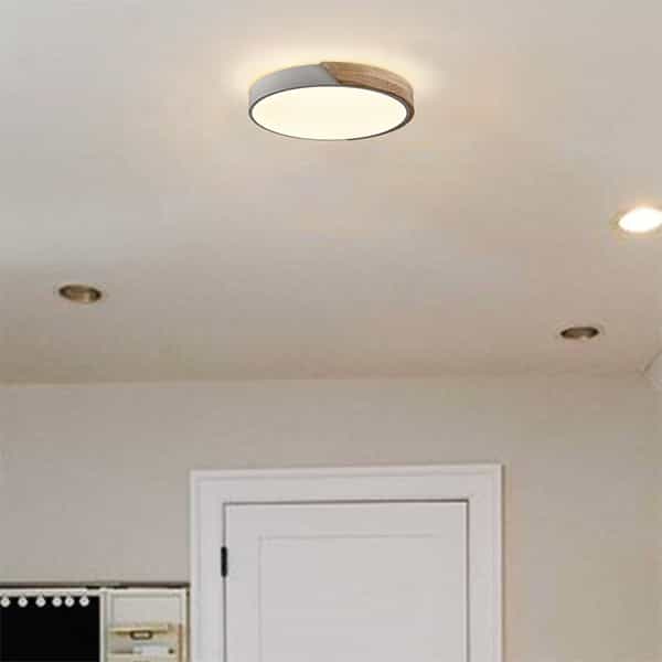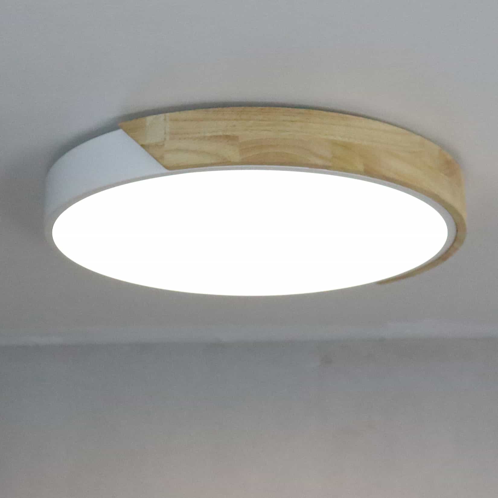 • Minimalist White and Wood LED Flush Mount Ceiling Light
