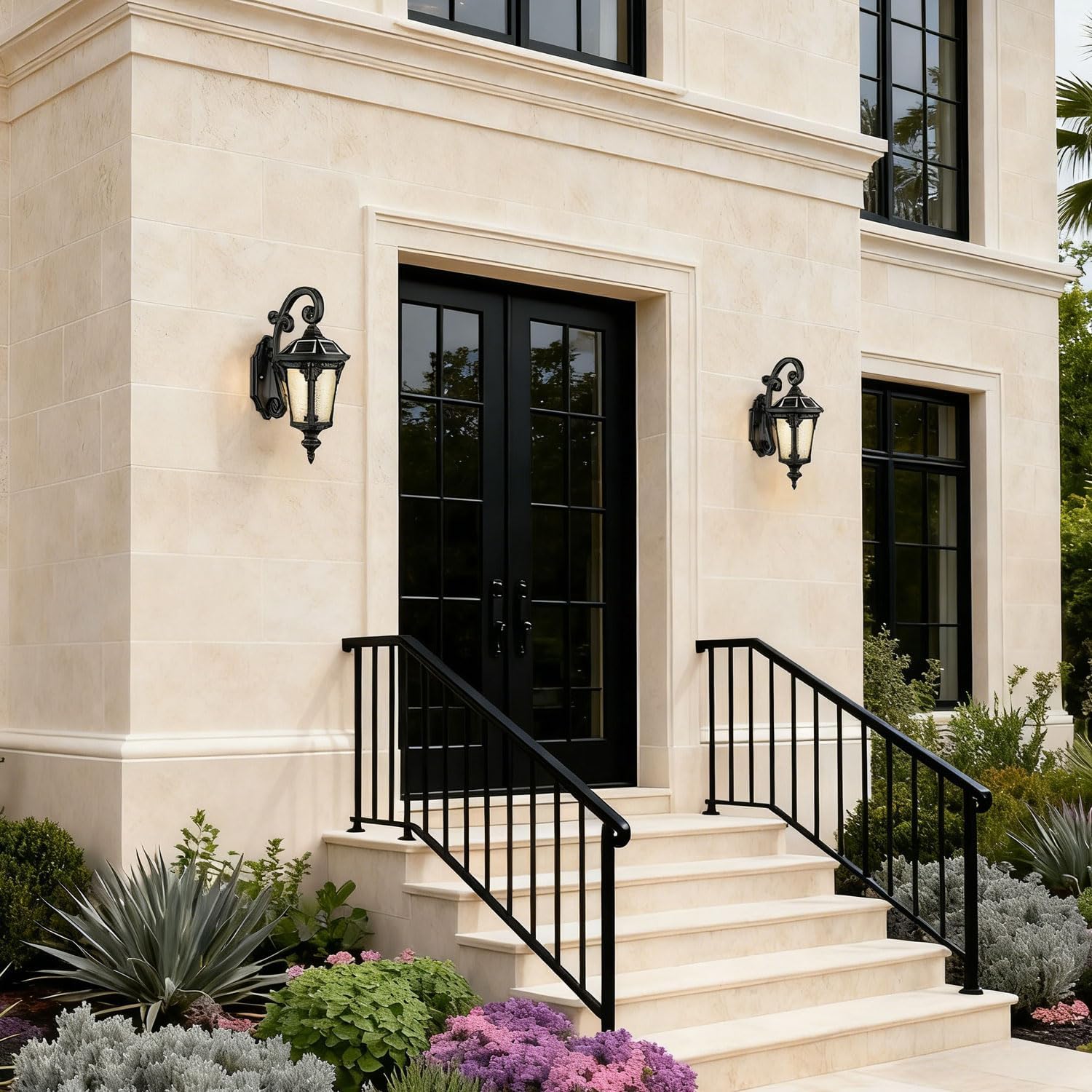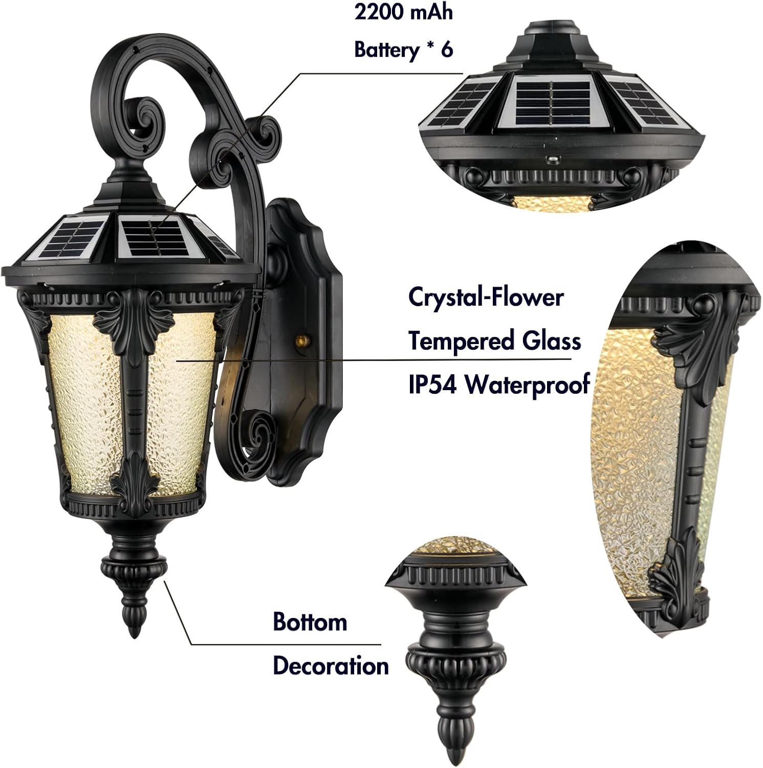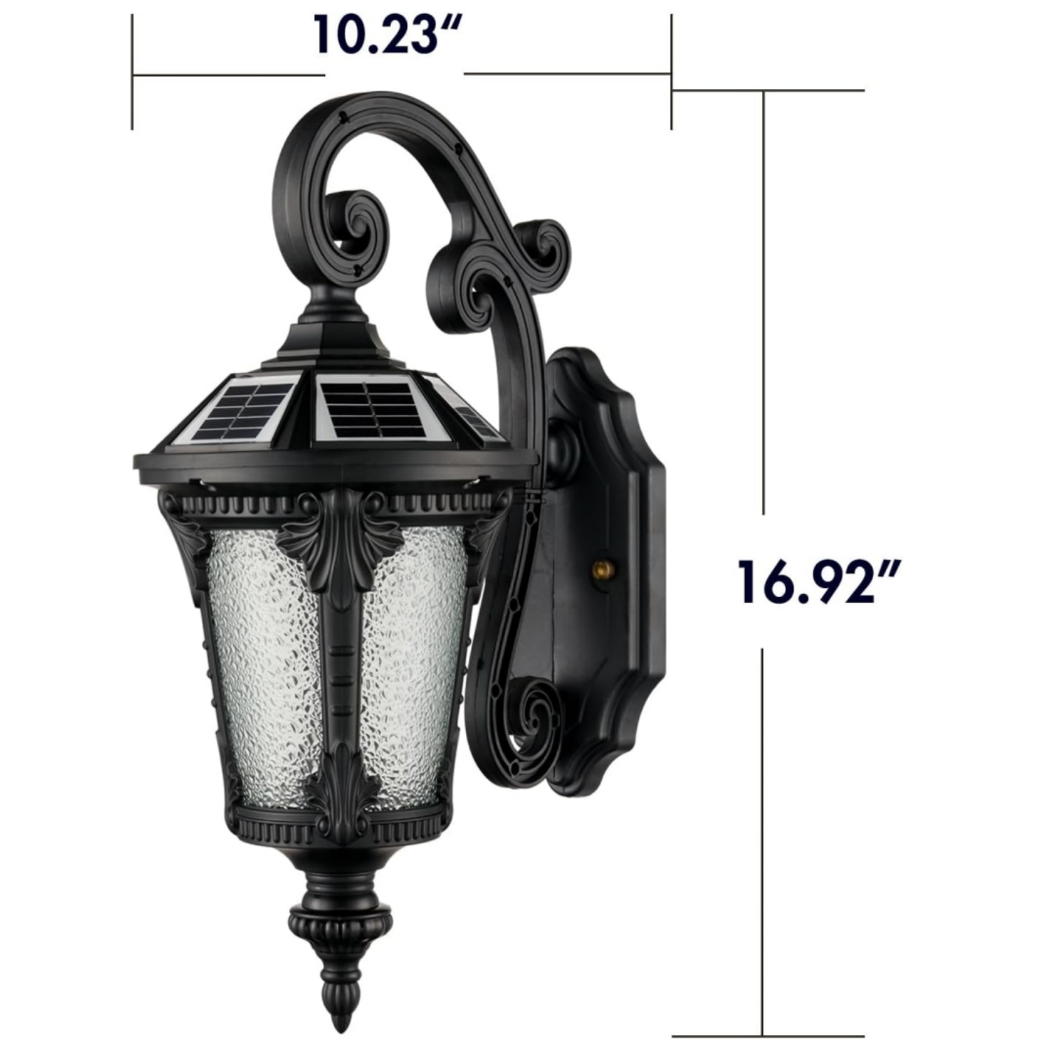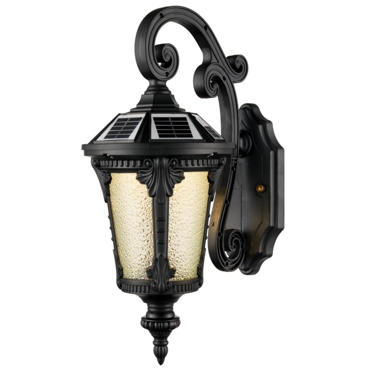 Flaunting a black finish, the solar outdoor wall light perks up your alfresco space with a touch of urban sophistication. Its conic crystal-flower glass panels show off the beauty of geometry and convey a refined touch to the space. The light fixture’s framing scroll accents and curving patterns gracefully embrace its opaque, impurity-free hand-blown glass panels, adding a ton of texture to the aesthetic. It is IP54 waterproof and perfect for outdoor use. Its elegantly curved arm adds the right amount of splendor to any space. The black finish contrasts with the glass panels and adds alluring eye appeal to the space.