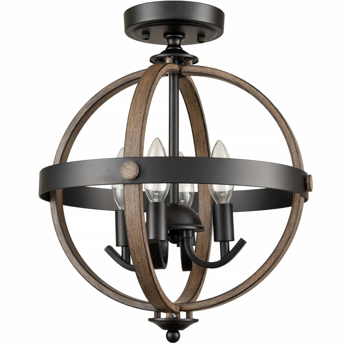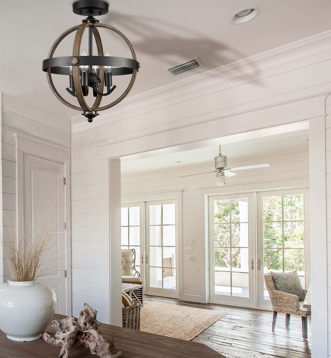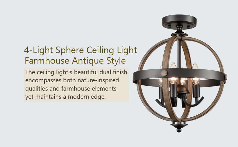 The ceiling light’s beautiful dual finish encompasses both nature-inspired qualities and farmhouse elements, yet maintains a modern edge.