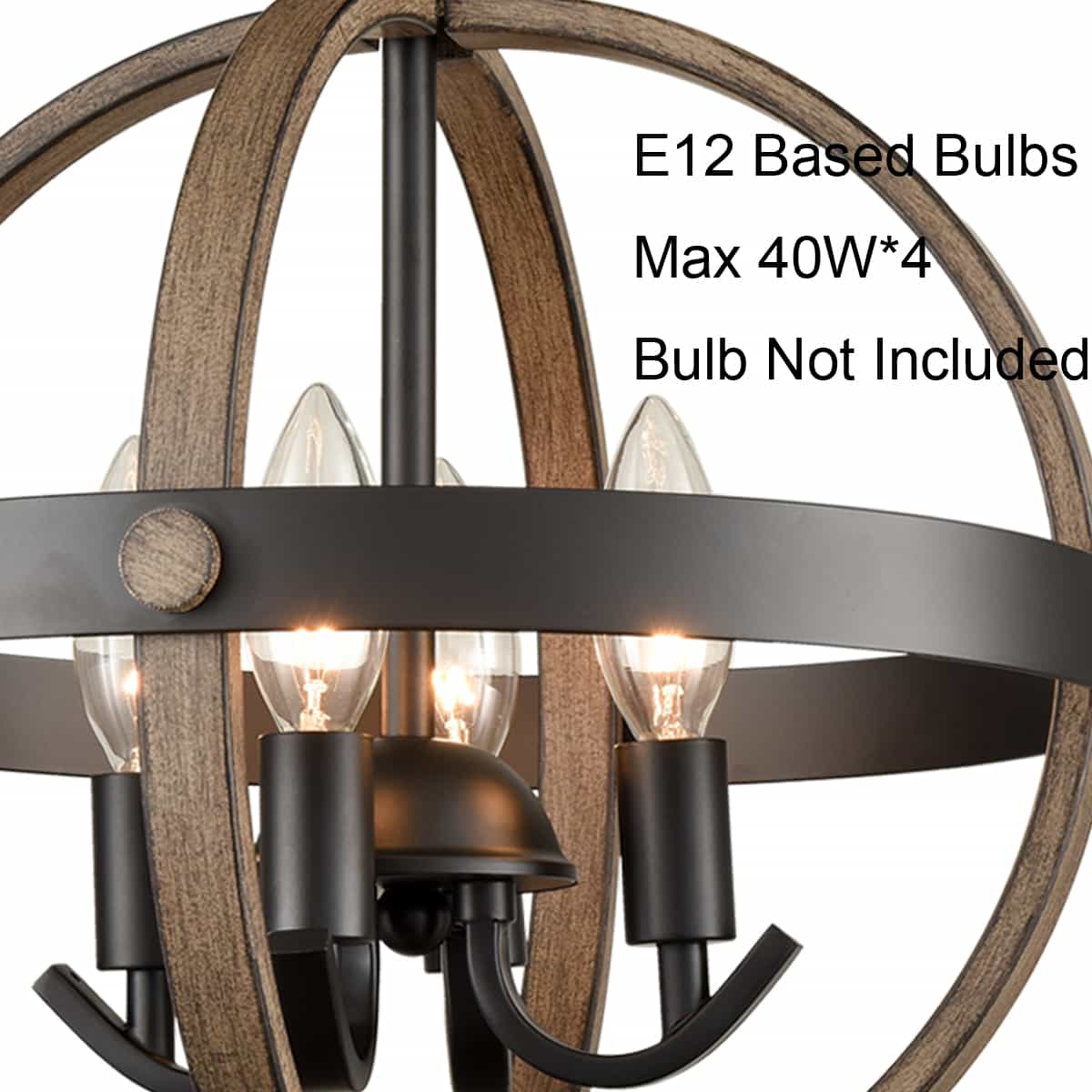 The semi flush ceiling light features 4 E12 base socket which is compatible with a variety of bulb types: LED, INCANDESCENT, CFL.