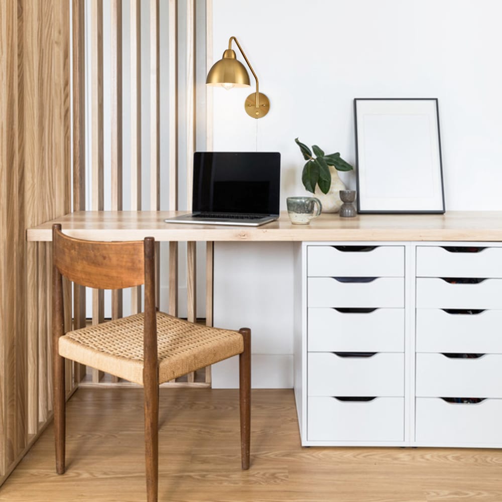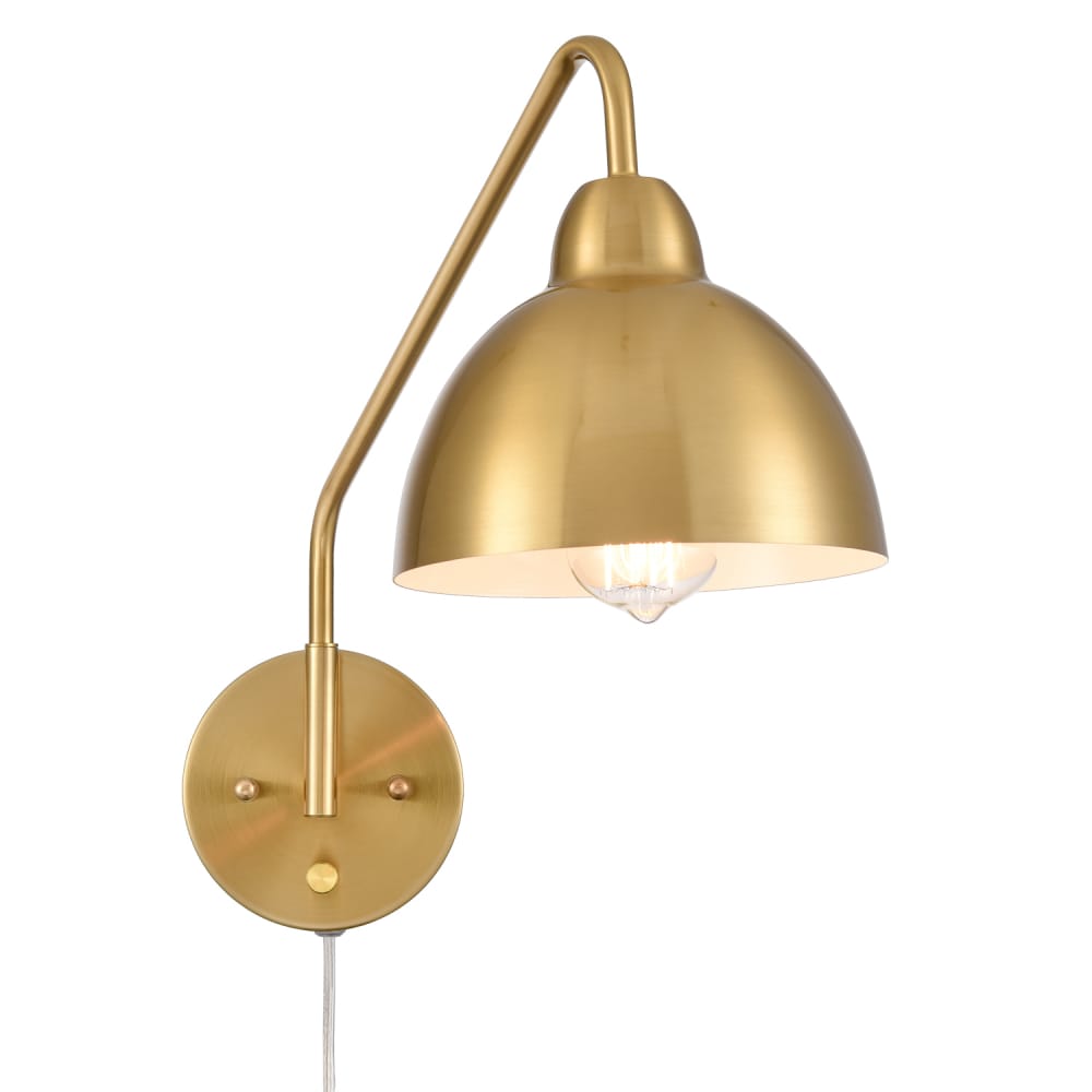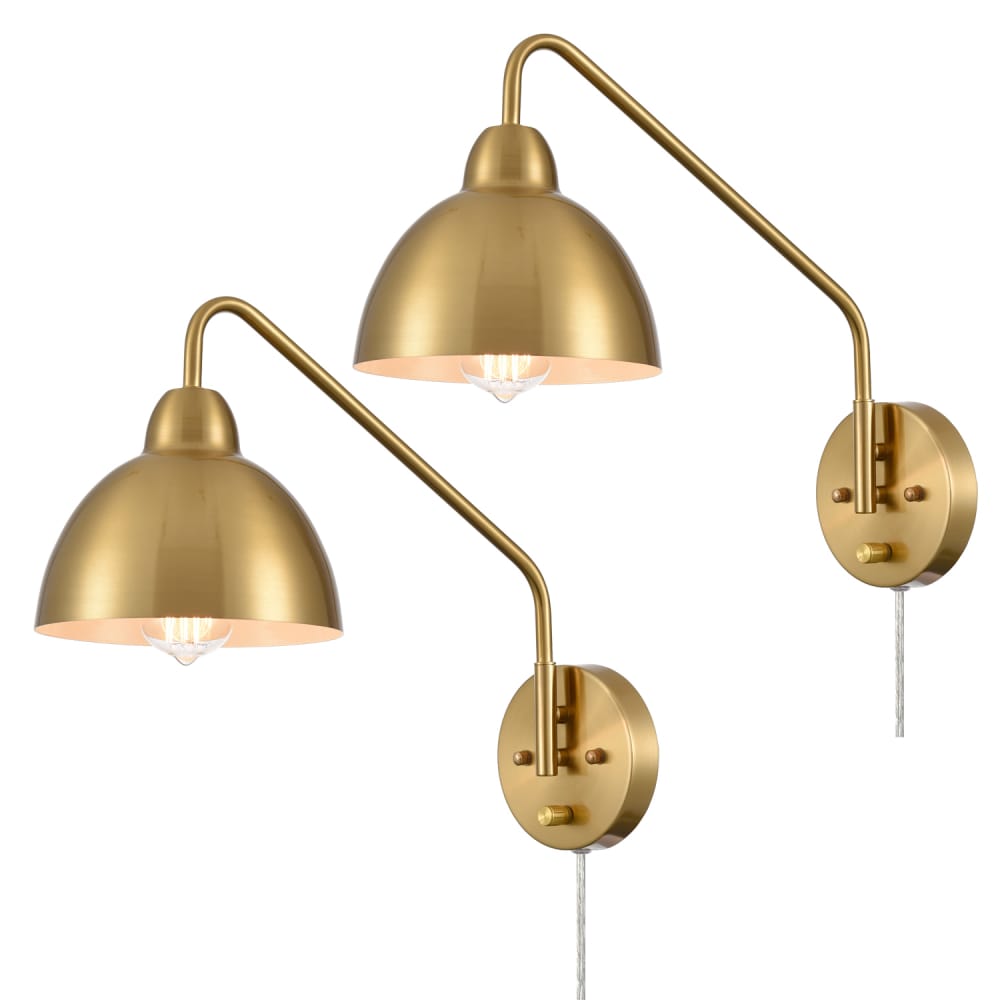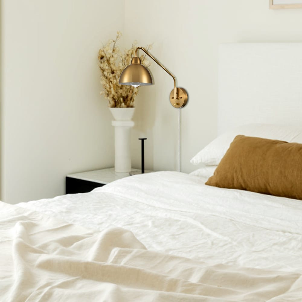 The swing arm wall sconces’ outer surface of dome shades, swing arms and canopies are finished in an electrophoretic brass finish, sprucing up your home interior with a glint of glamour. The inner surface of the dome shades is dressed in a white finish. Their beautiful dual finish makes a modern yet classic statement in your living space. The switch on their canopy is just an on/off switch without a dimming function. Their swing arms are adjustable to pivot 360 degrees horizontally. They can be used to provide both function and style in bedroom, dining room, foyer, kitchen, living room, reading room, and study room. They come with 70.86-inch power cords.
