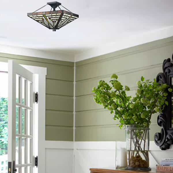 • Tiffany Style Ceiling Light Stained Glass Semi Flush Mount Light