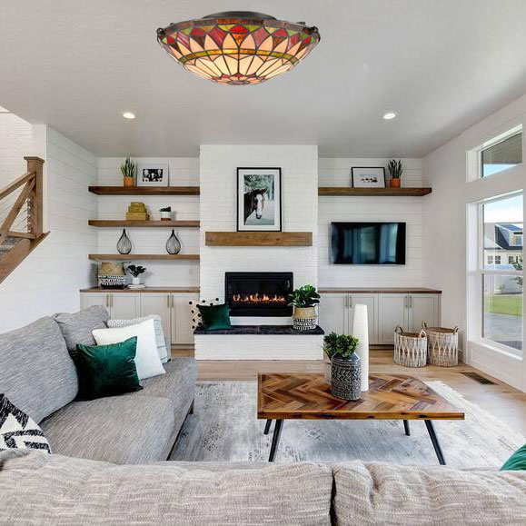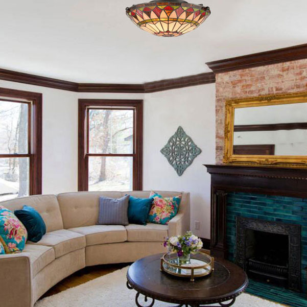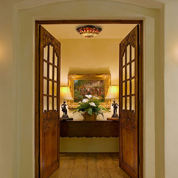 The Tiffany-style semi flush mount ceiling light’s canopy and lamp-holder are accented with a black finish, conveying a vintage inspired touch to your home decor. Featuring the copper foil technique, it is constructed of expertly handcrafted impurity-free stained glass.