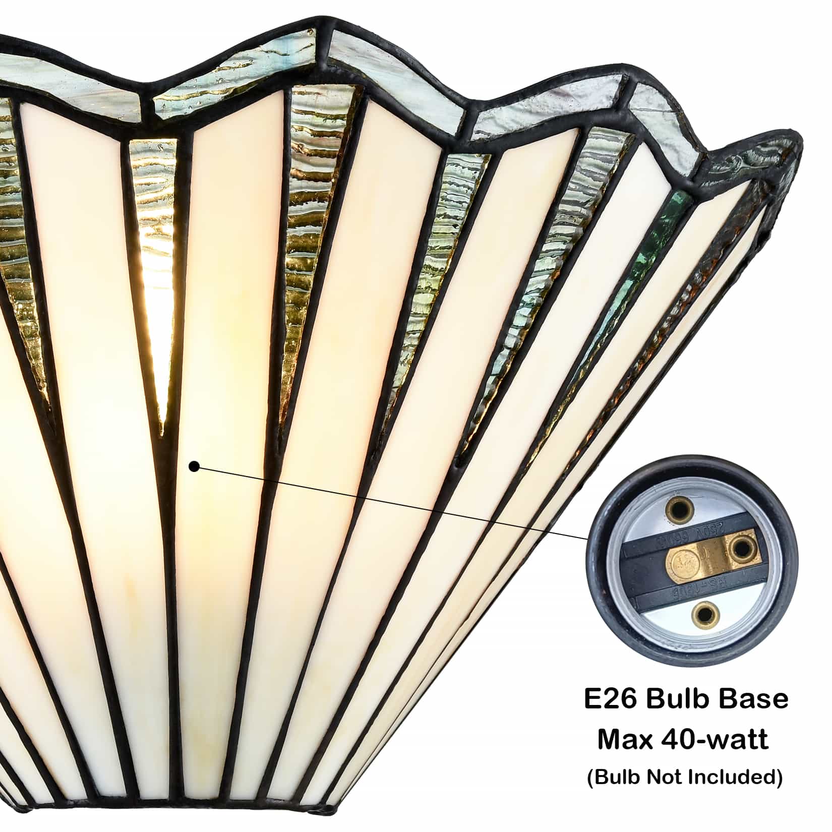 The Tiffany sconce comes with 1 E26-base socket which is compatible with a variety of bulb types: LED, INCANDESCENT, and CFL.