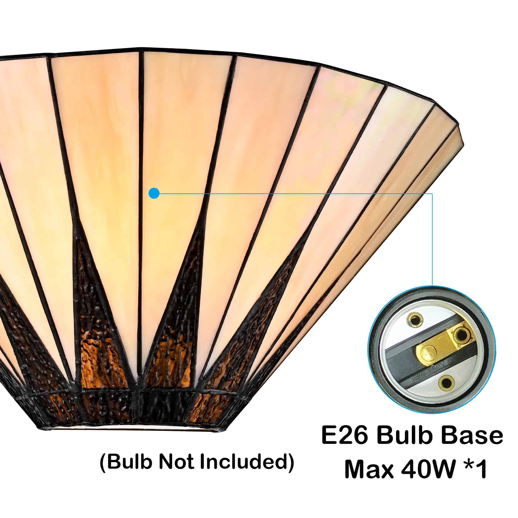 The Tiffany style wall sconce comes with 1 E26-base socket, which is compatible with a variety of bulb types: LED, INCANDESCENT, and CFL.