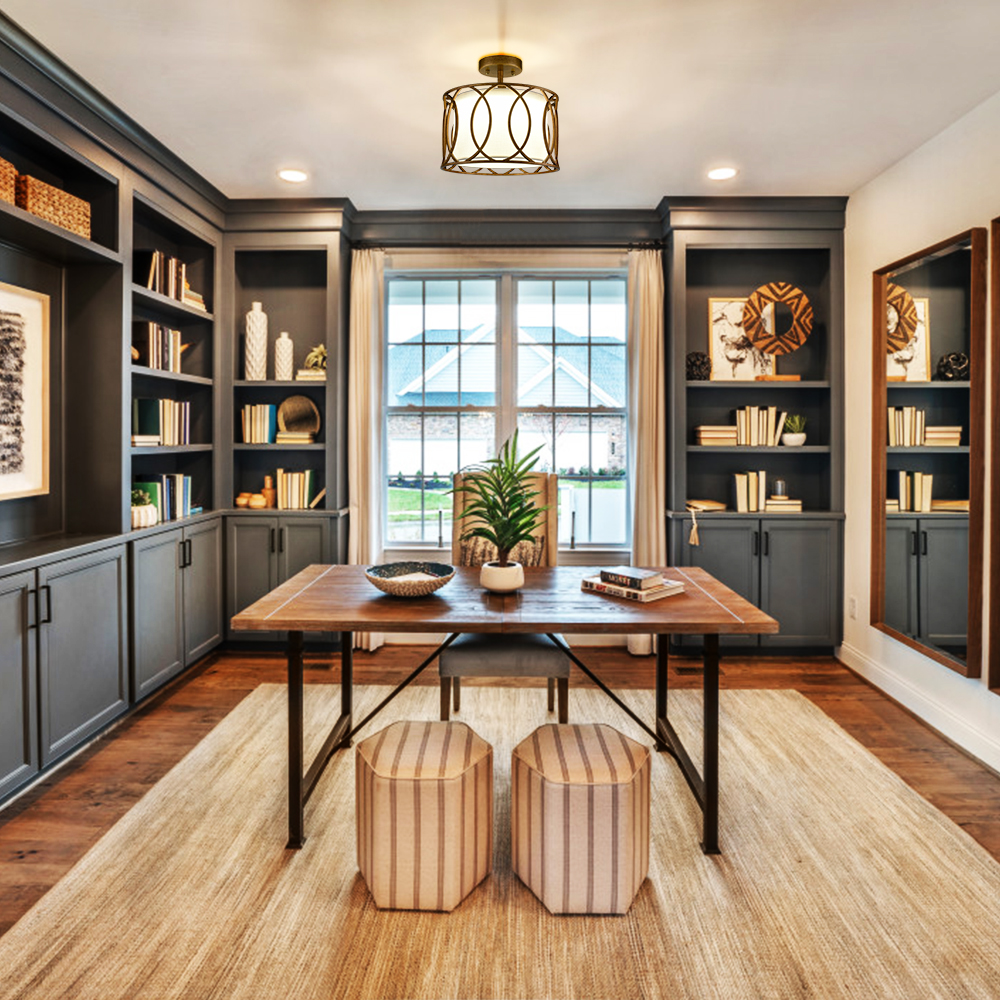 Finished in rusty gold, the led ceiling light livens up your home with a touch of bling. It flaunts an open metal cage that showcases a linked oval design, offering unbeatable character to your interior. Its metal drum shade encases a white linen shade, making for a dramatic piece of art to add visual interest to your living space. Its glamorous appearance is guaranteed to grab a few glances.