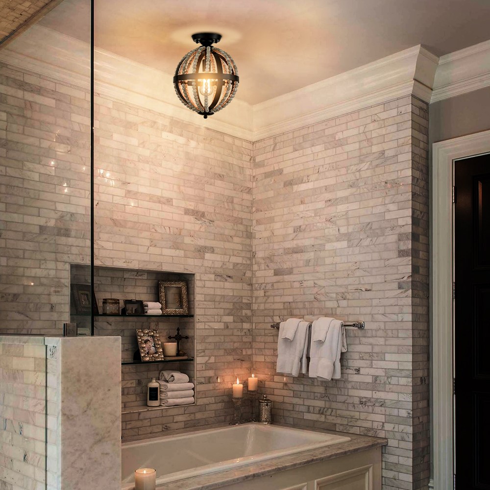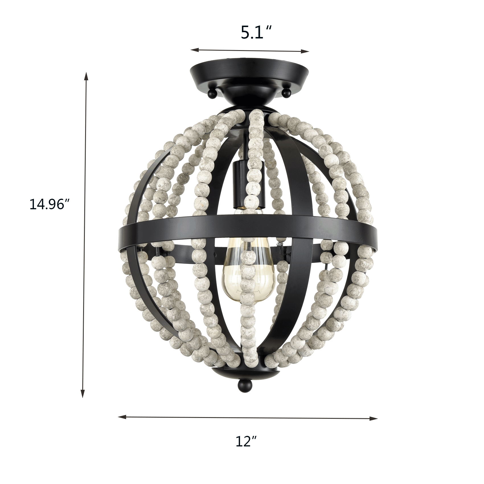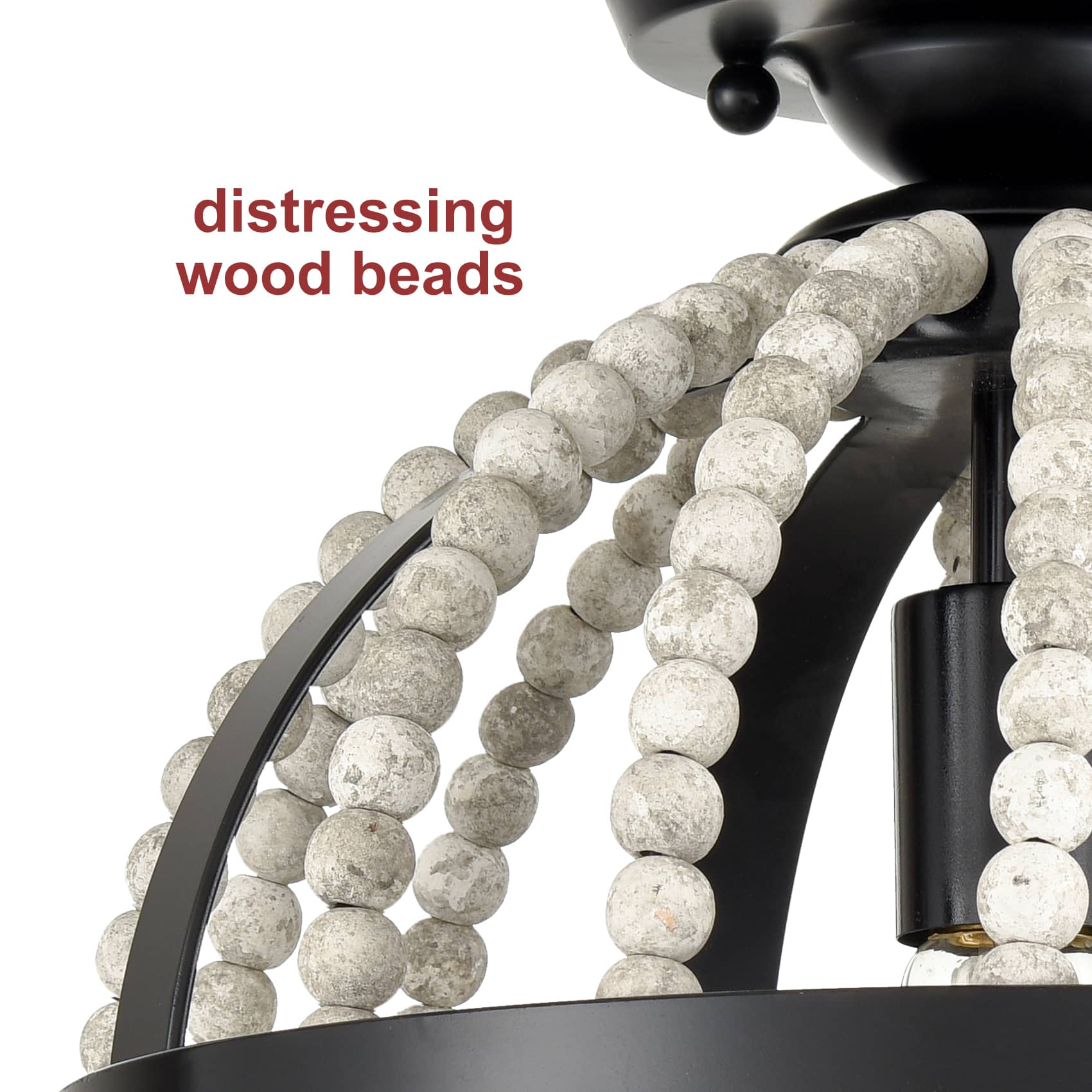 The wood beaded ceiling light fixture’s canopy, lamp holder, and three circular metal bands are accented with a rustproof black finish, lending a dash of vintage vibe to your home. The ceiling light’s wood beaded rings showcase a distressed white finish for a unique, boho-inspired touch.