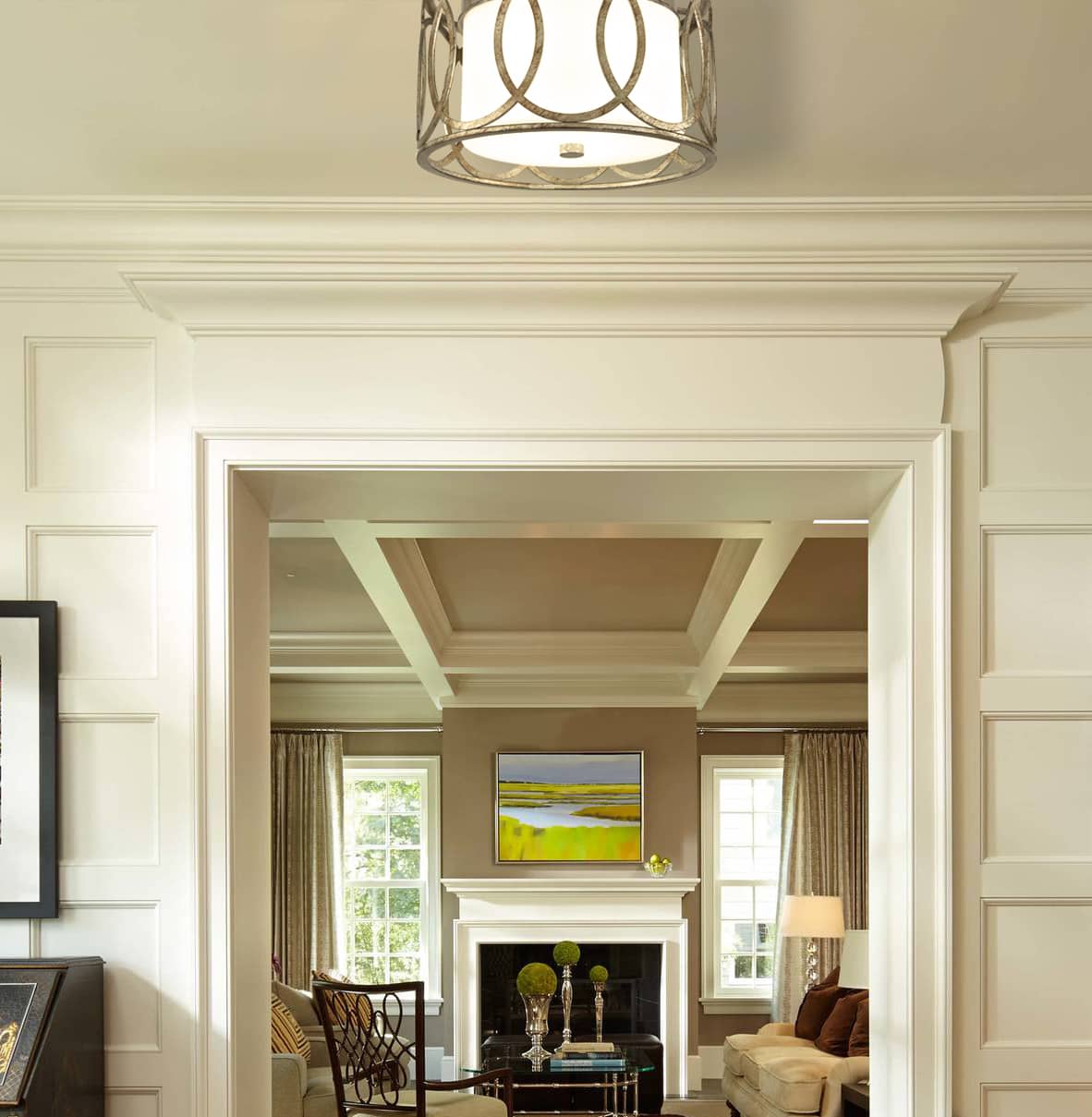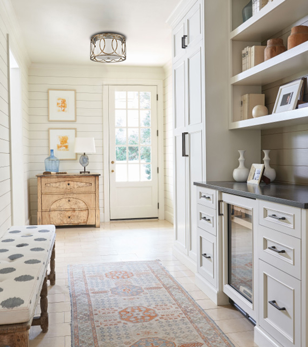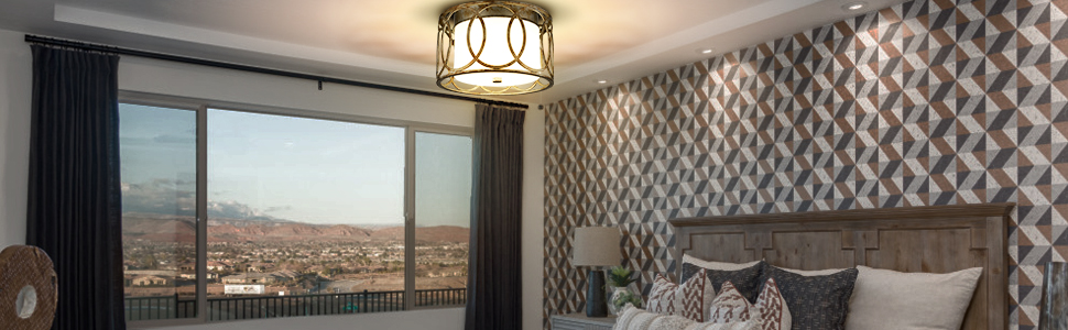 Finished in weathered gray, the flush mount ceiling light infuses a rustic-inspired charm to your interior.