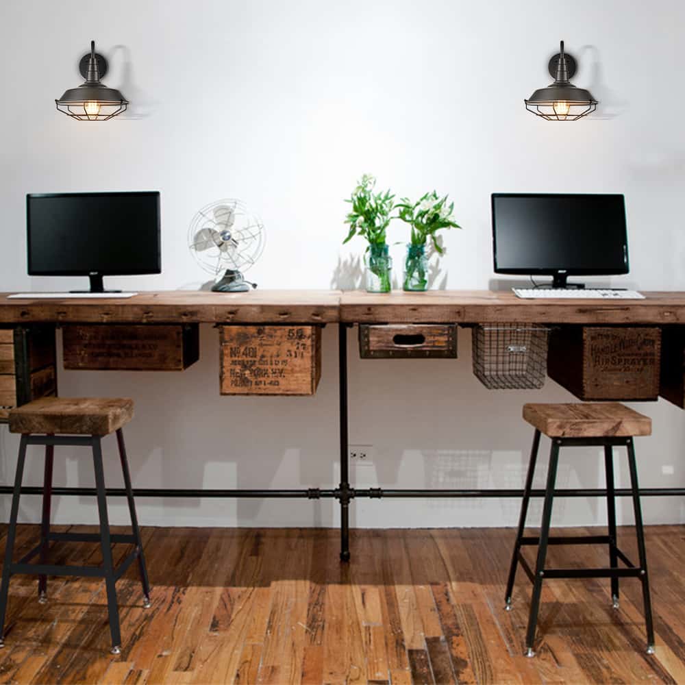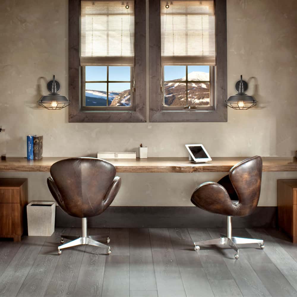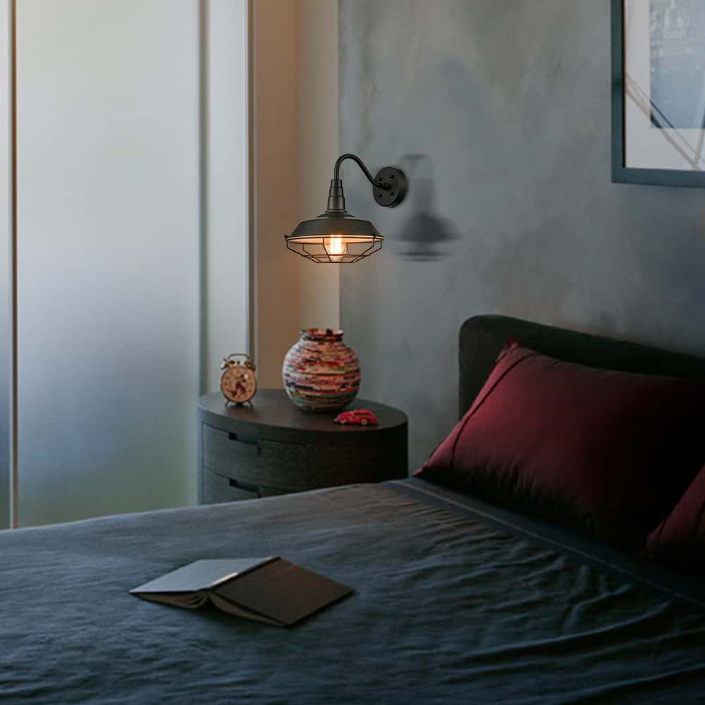 The wall light with semi-gloss black finish, its exquisitely welded metal cage barn shade injects a large dose of industrial chic to your home decor.