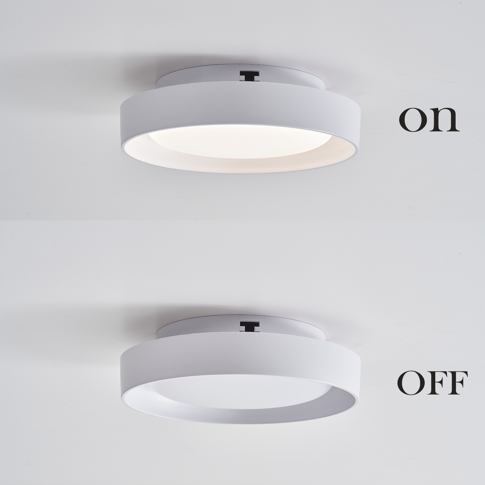 Flaunting a modern design, the LED flush mount ceiling light gives your living space a touch of urban sophistication with a white finish. The rounded lampshade is crafted of polycarbonate while the rounded lamp body is made from ABS plastic. Its all white lamp body adds a touch of elegance and alluring visual interest to the living area. Its polycarbonate lampshade allows a soft glow to pass right through, filling the space without any glare. The light fixture encompasses both modern-inspired qualities and a touch of geometry, yet maintains a minimalist vibe.