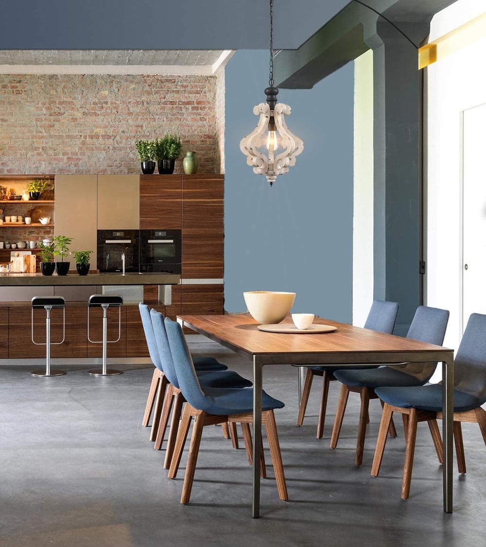 The wooden pendant light features 1 E26 base socket which is compatible with a variety of bulb types: LED, INCANDESCENT, CFL.